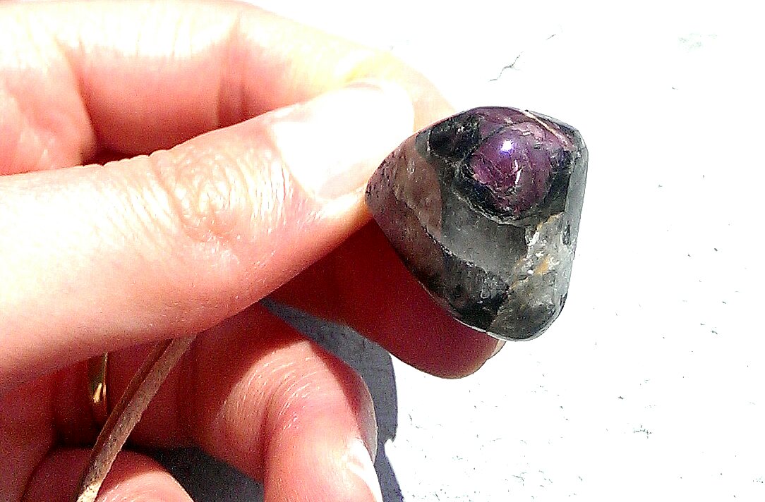Am Samstag waren wir wieder Steine guggen. Hatten wieder neue getrommelte, gebohrte Turmalinanhänger für 18 Euro das Stück. Ich gleich einen wunderschön gemusterten Rubellit in Quarz gekrallt und einen Apyrit, der zwar nicht durchsichtig aber dafür richtig richteritblaulila mit lila war - gleich rein in den Warenkorb.