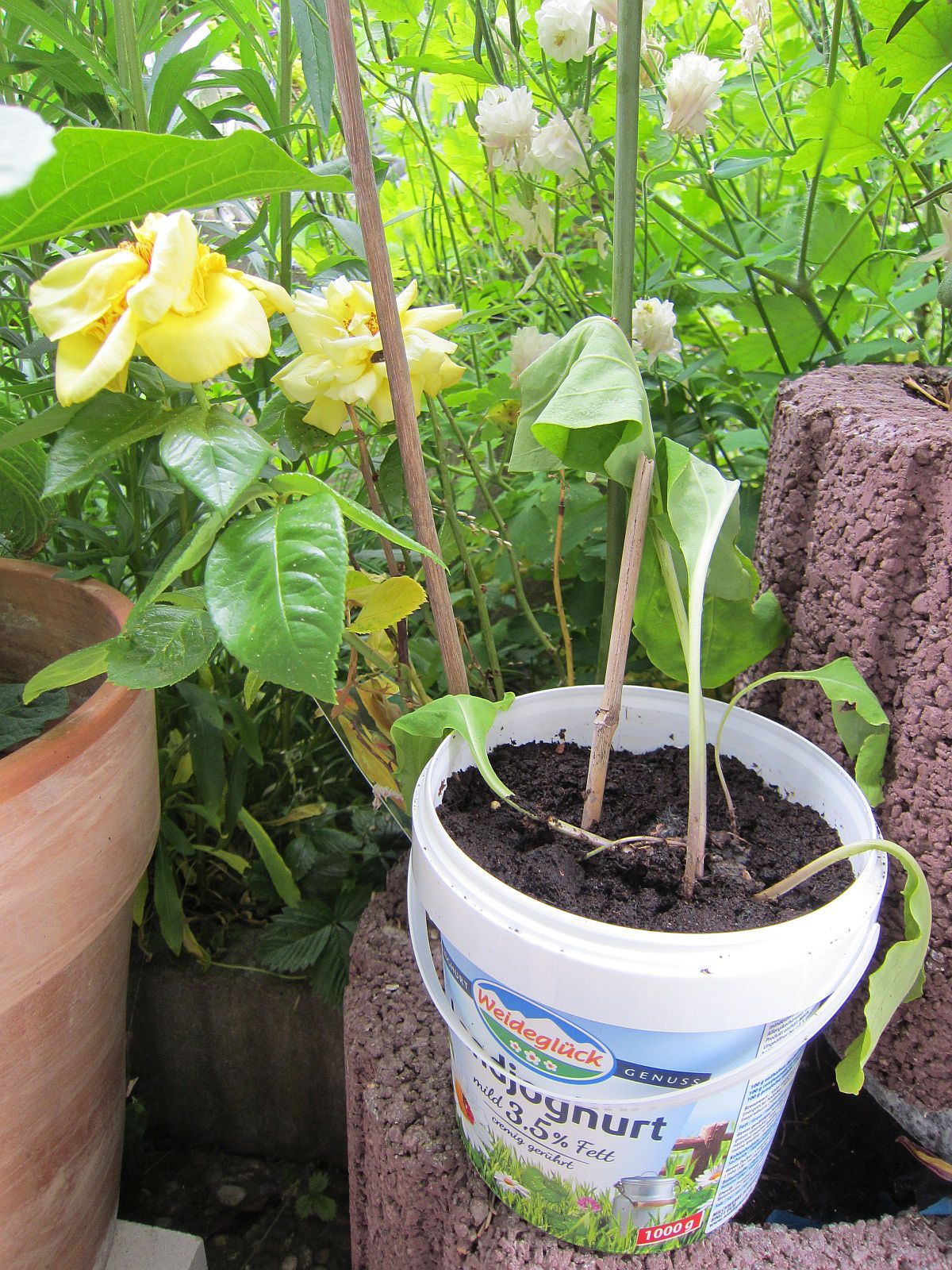 Übrigens, im Yoghurttöpfchen hab ich Gießlöcher eingebohrt.