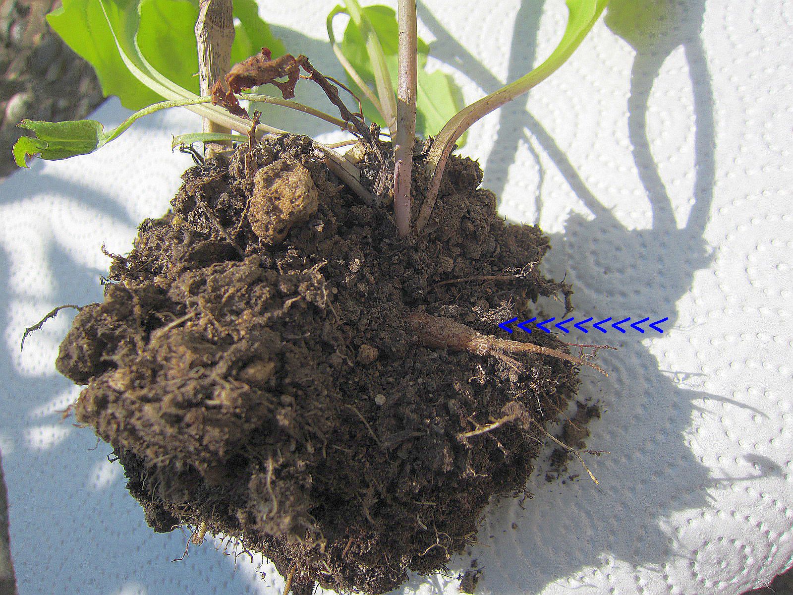 habe ich sie nun mal ausgegraben aus seiner knochenharten Erde und konnte nun die Wurzeln sehen.