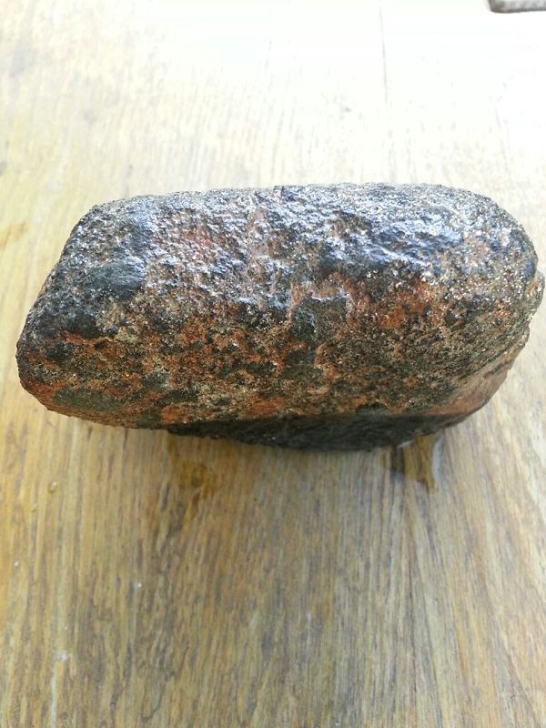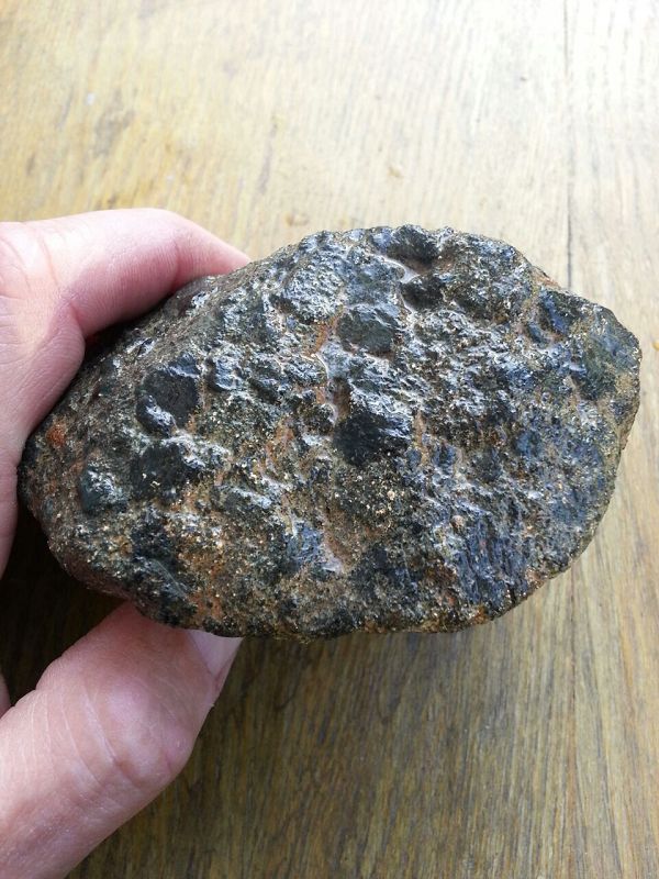 schwer und sieht doch ziemlich metallisch aus - könnte ein Stein-Eisen-Meteorit sein.