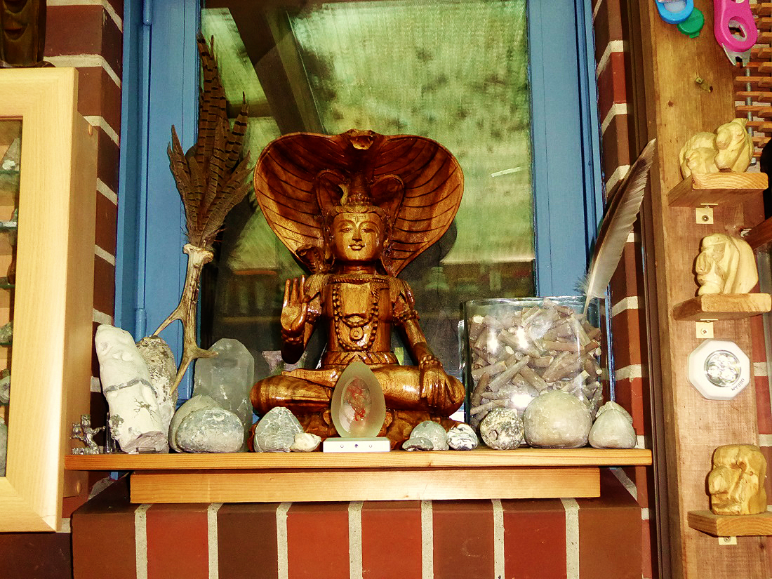 den Buddha für 5 Euro vom Baumarkt gehandelt, weil der Solarfühler beklebt war an dem Ausstellungsstück, und man dachte, er würde eh nicht strahlen.