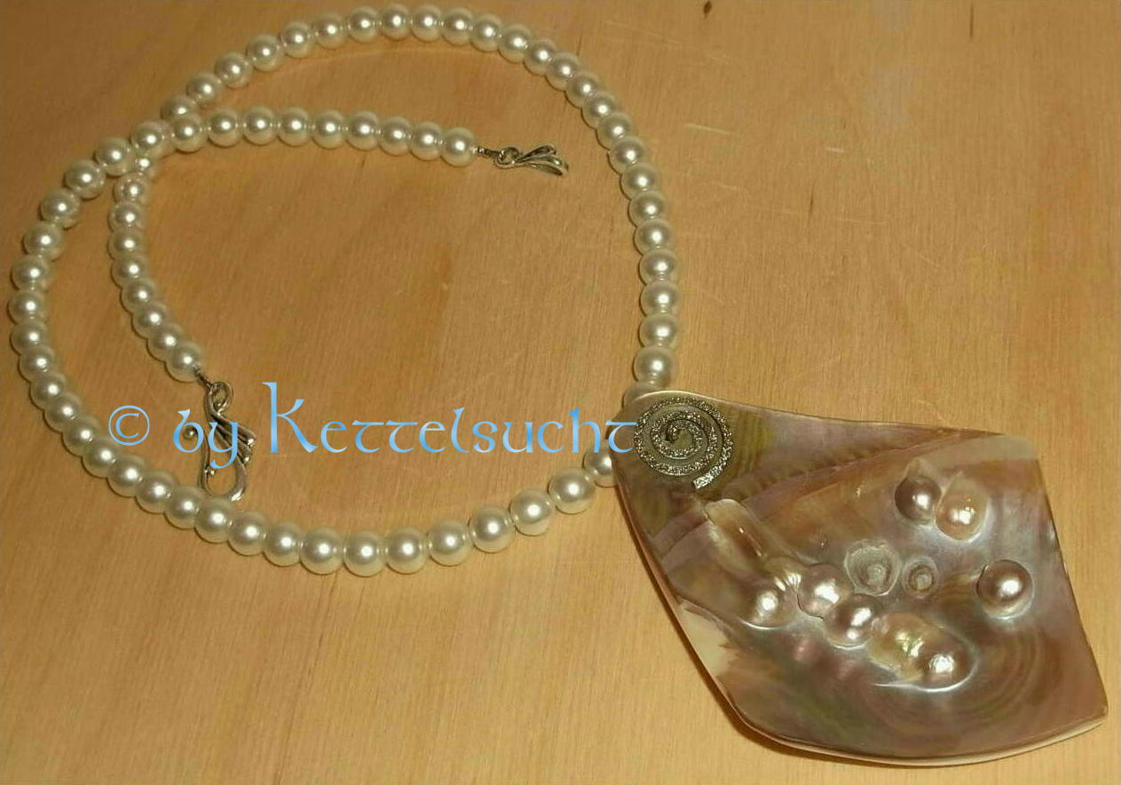 Perlenkette mit Muschelanhänger der ebenfalls noch Perlen beherbergt