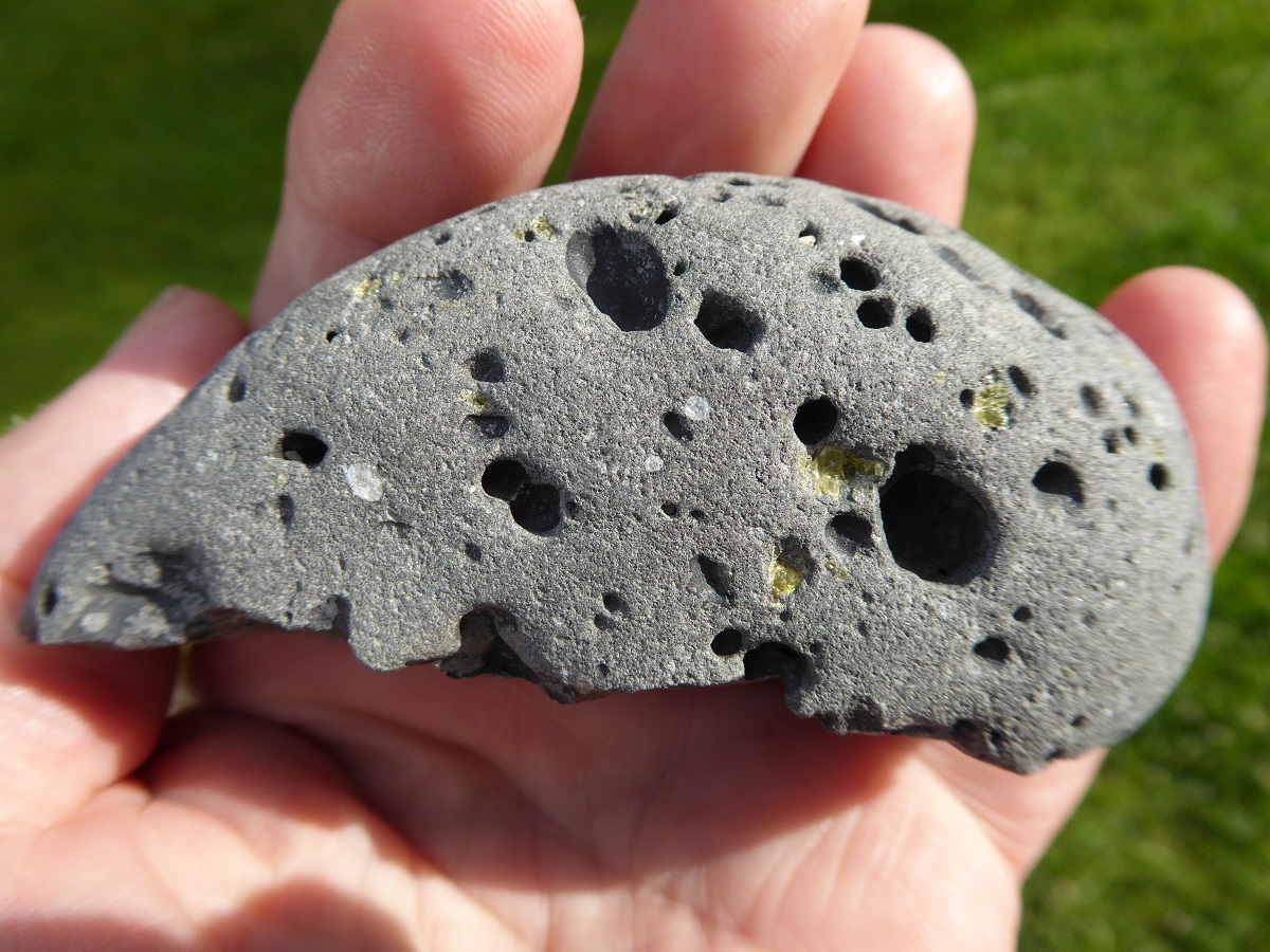 Basalt mit Gasblasen und Olivin und ich glaube Plagioklas
