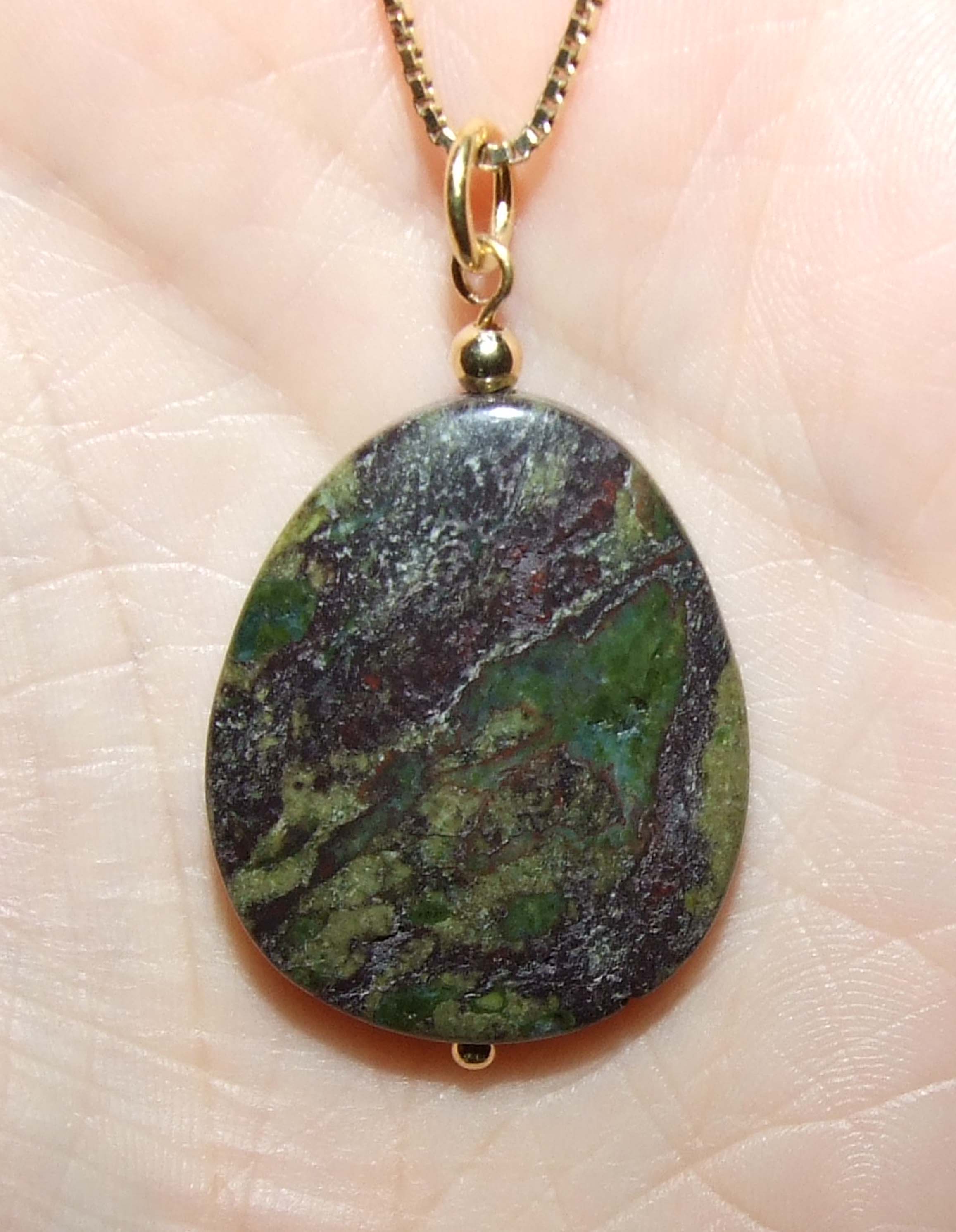 Hier zeige ich euch mal meinen Drachenblutjaspis-Anhänger.