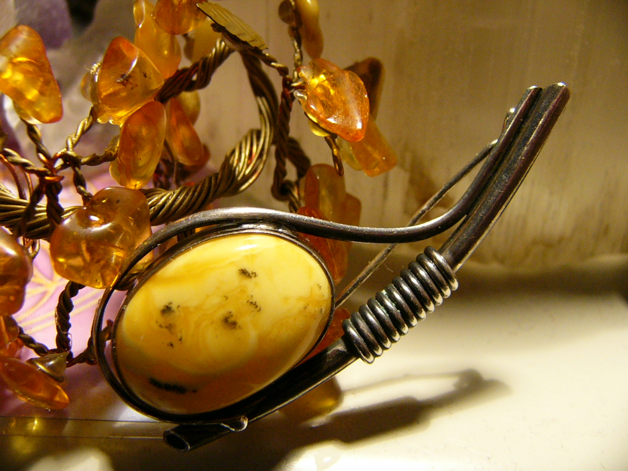 Da war nur noch eine kleine Schachtel der Inhalt diese Bernstein Brosche und auch noch ein Krümmelchen Bernstein