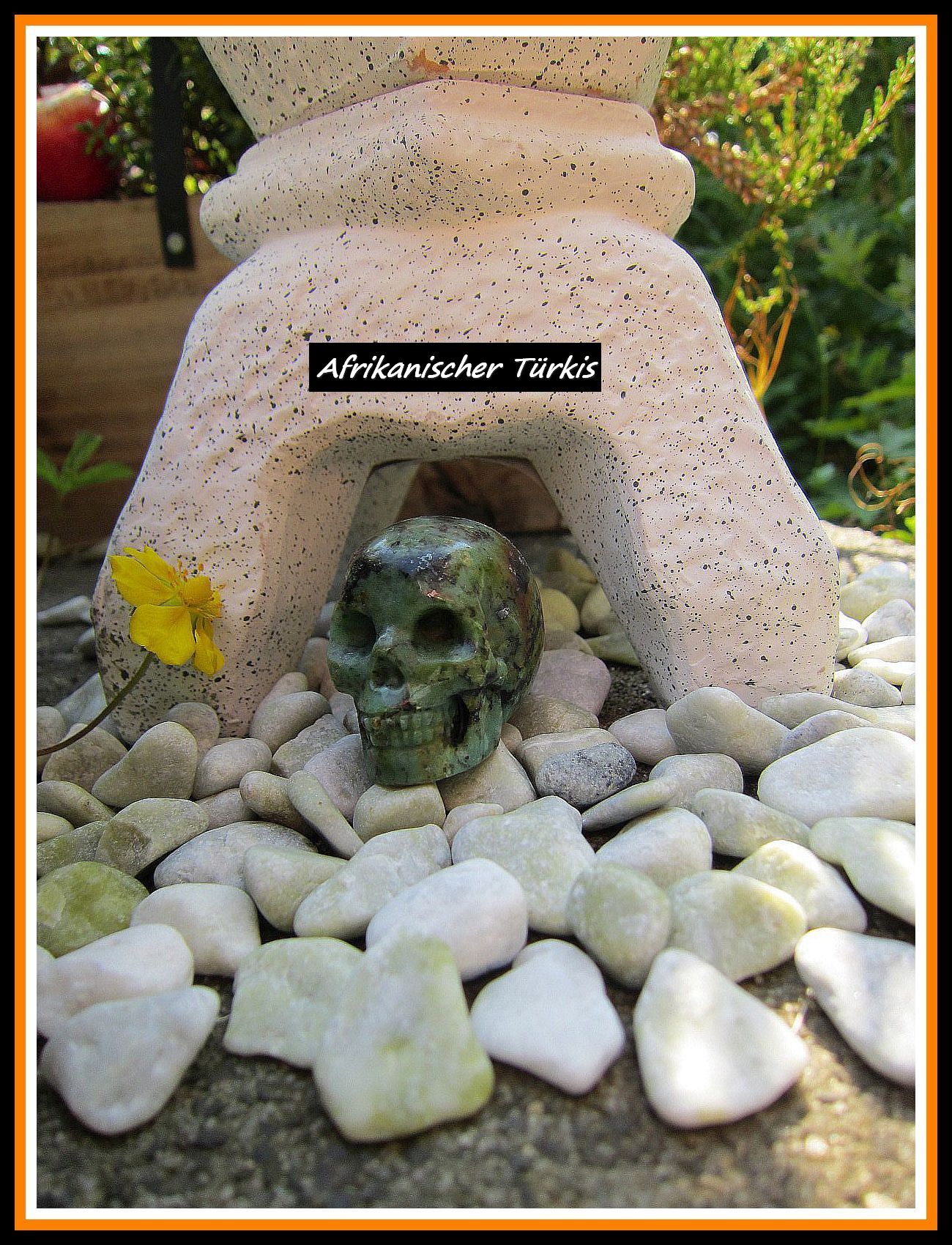 Schon längere Zeit wünschte ich mir einen Rubin-Zoisit Skull (obwohl ich grün eigentlich nicht so mag). Doch so sehr ich auch suchte, "meiner" war -bisher- nicht dabei, - zumal sie sowieso nur recht selten angeboten werden.