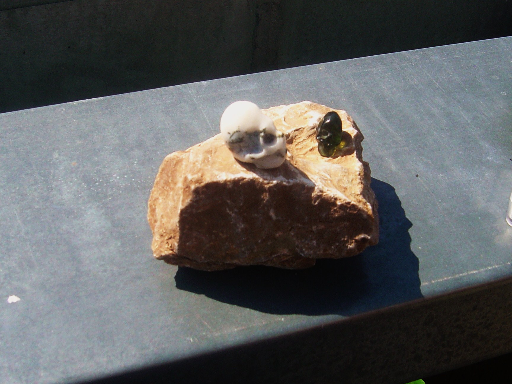 Mein Baumachat Schädel zusammen mit dem Moldavit