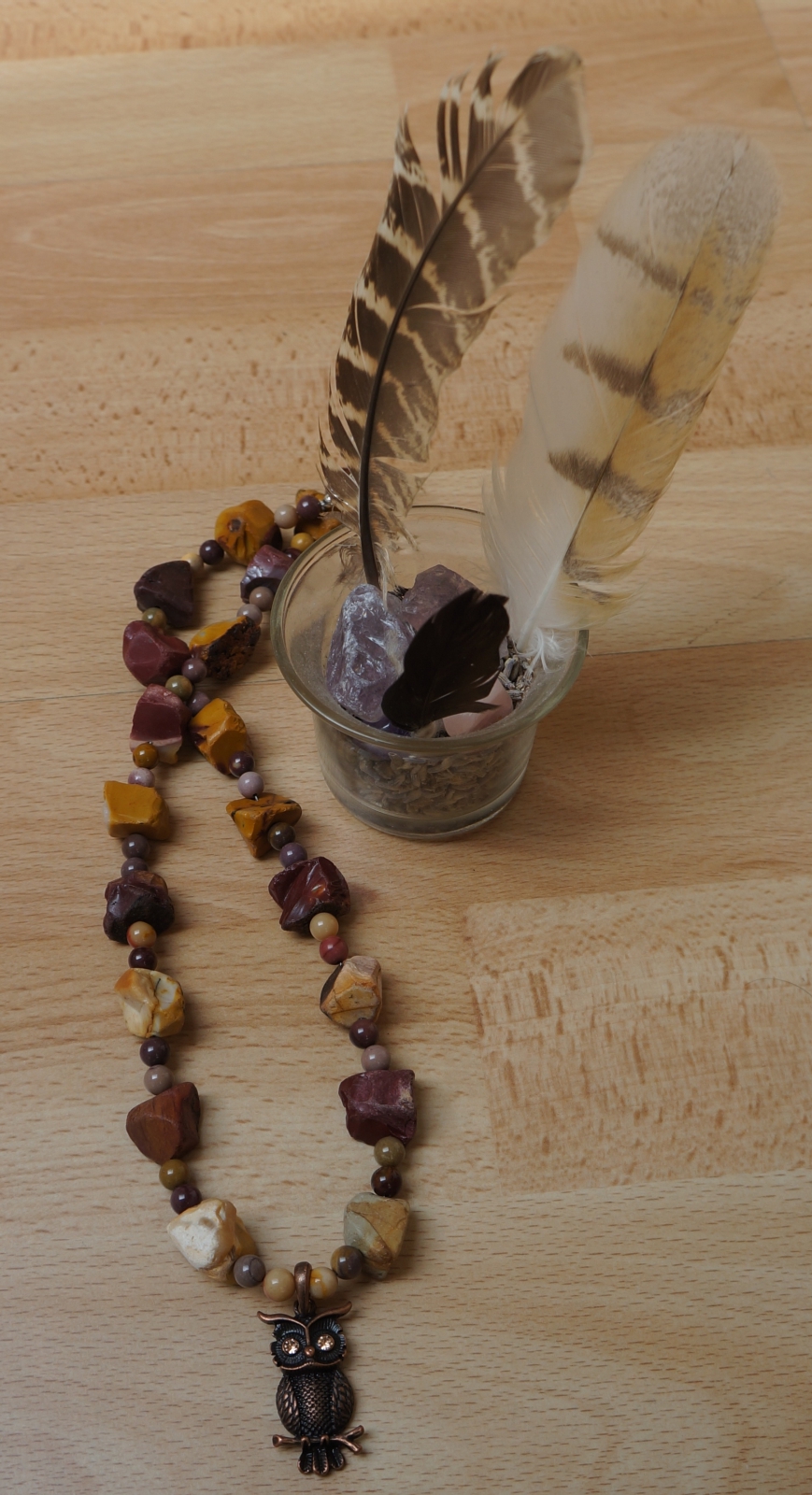 Der Türkiston des Magnesits harmoniert wunderbar mit dem Altbronze der Metallteile, gefällt mir gut!