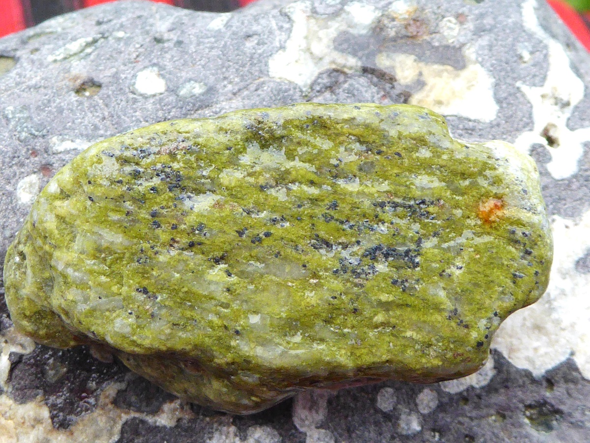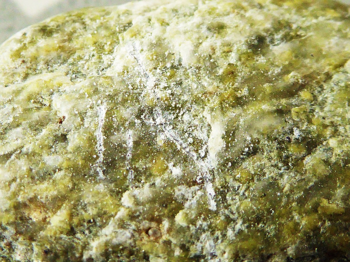 Diesen fand ich gestern am Strand und von der Farbe her erinnert er mich an Lizardit. ist ein anderes Grün als das übliche Epidot-Grün.