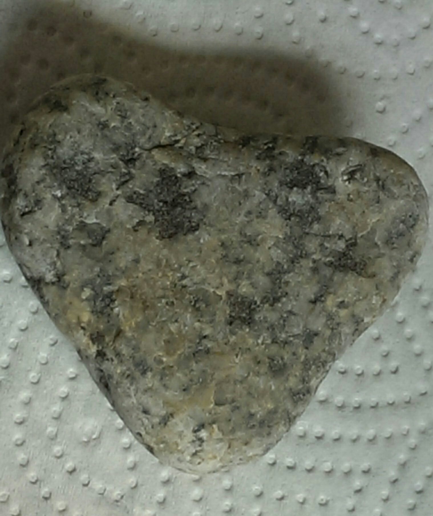 Hier noch etwas was mich jetzt stundenlang grübeln ließ, worunter ich's einordne. Ein Herz aus hellem Feldspat mit Granateinsprengseln.