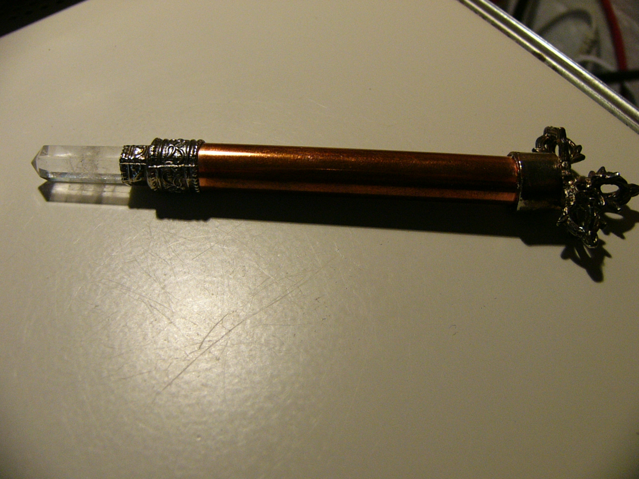 Beim sortieren im Fundus kam dieses Teil zum Vorschein, hm weiß nicht wofür ist es anzuwenden? Bergkristall Kupfer und silbrig. Es war ein Geschenk und landete im Kästchen weil was macht man damit?