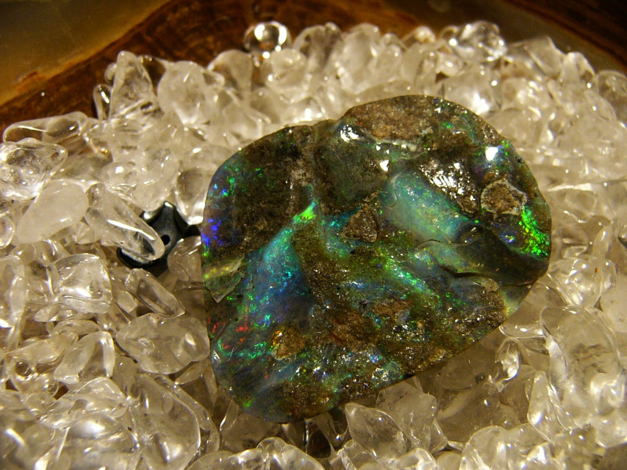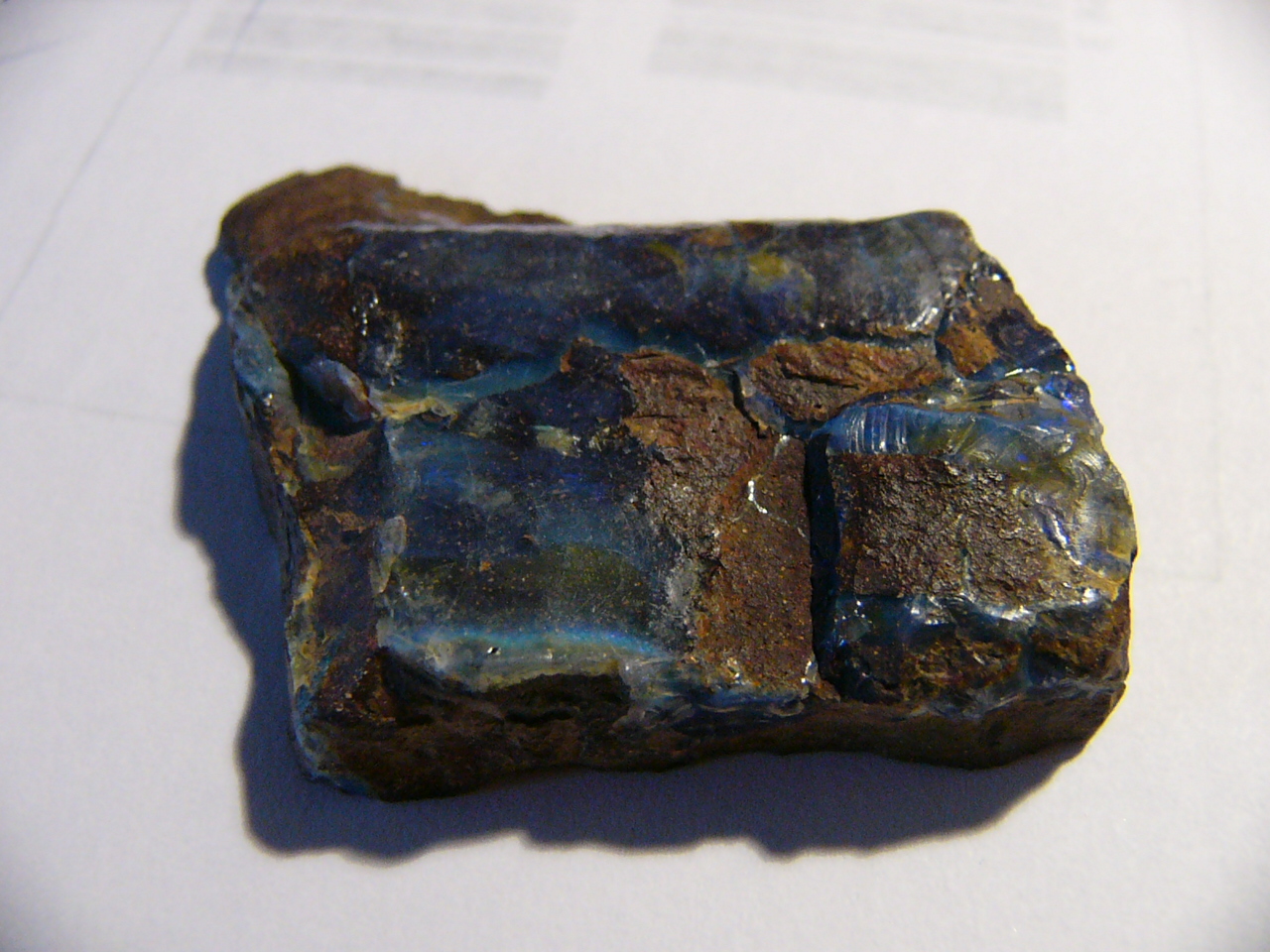 Der Rohstein ist nur etwas kantig zurechtgeschliffen und die Opalsignatur wurde zum Glänzen gebracht: