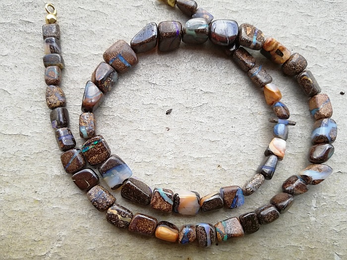 Boulderopal Kette aus lauter kleinen Boulders, stellenweise auch mit wunderschönem Feuer. Das Bild wird der Kette nicht gerecht.