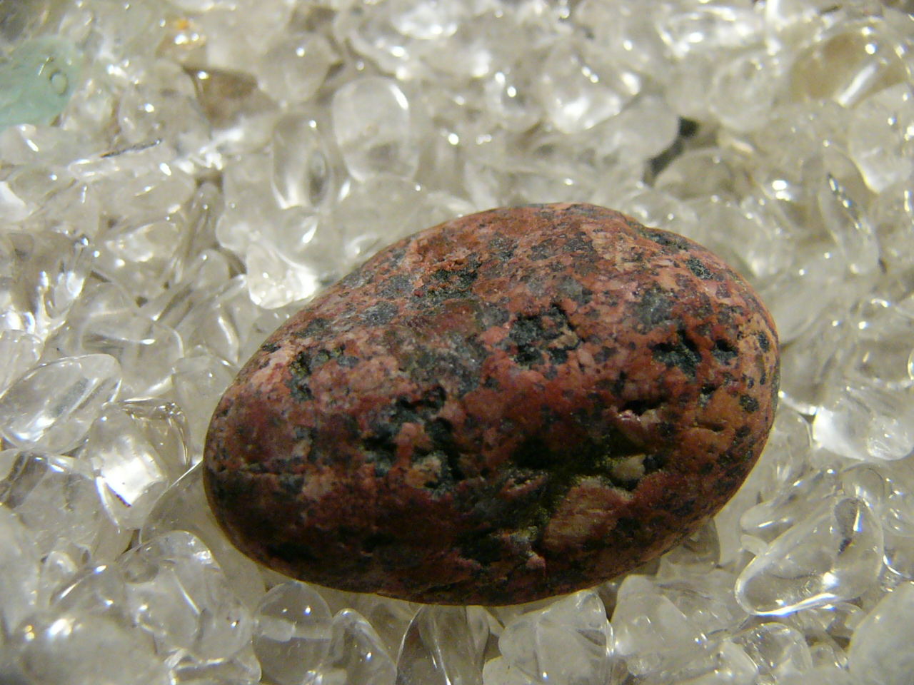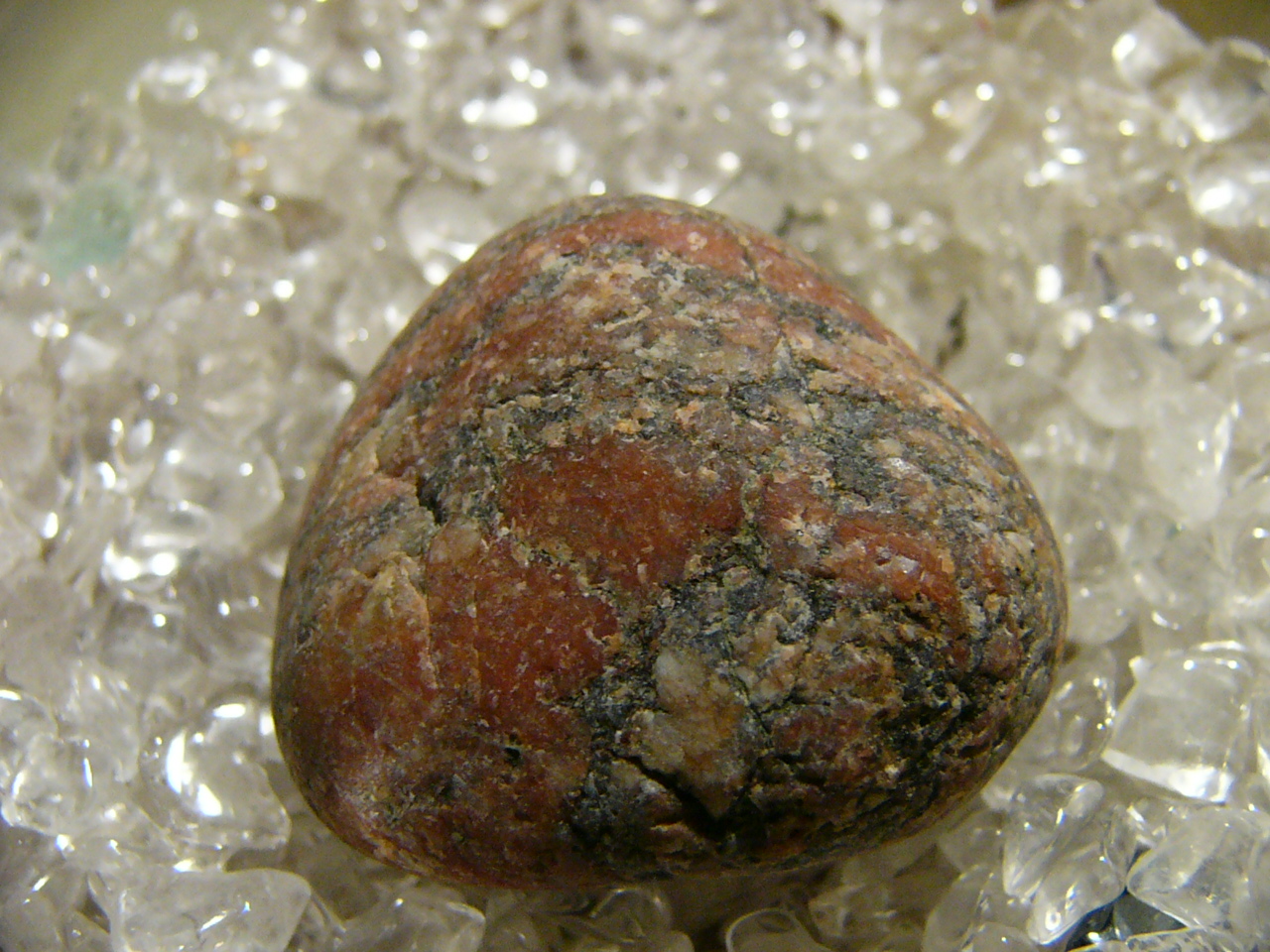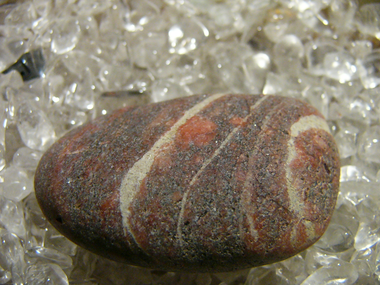 Hab hier einen hübschen Stein aus Fehmarn, der aussieht als ob Amethyste und andersfarbige Quarze in eine Suppe gerührt wurden