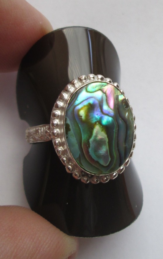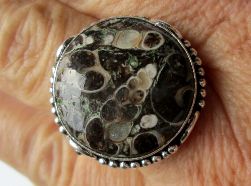 Diesen Ring habe ich als Mookait gekauft. Aber als ich ihn fotografierte kamen mir Zweifel, dass es einer ist. Die Zeichnung ist kaum sichtbar, erst auf den Fotos wird sie deutlicher.