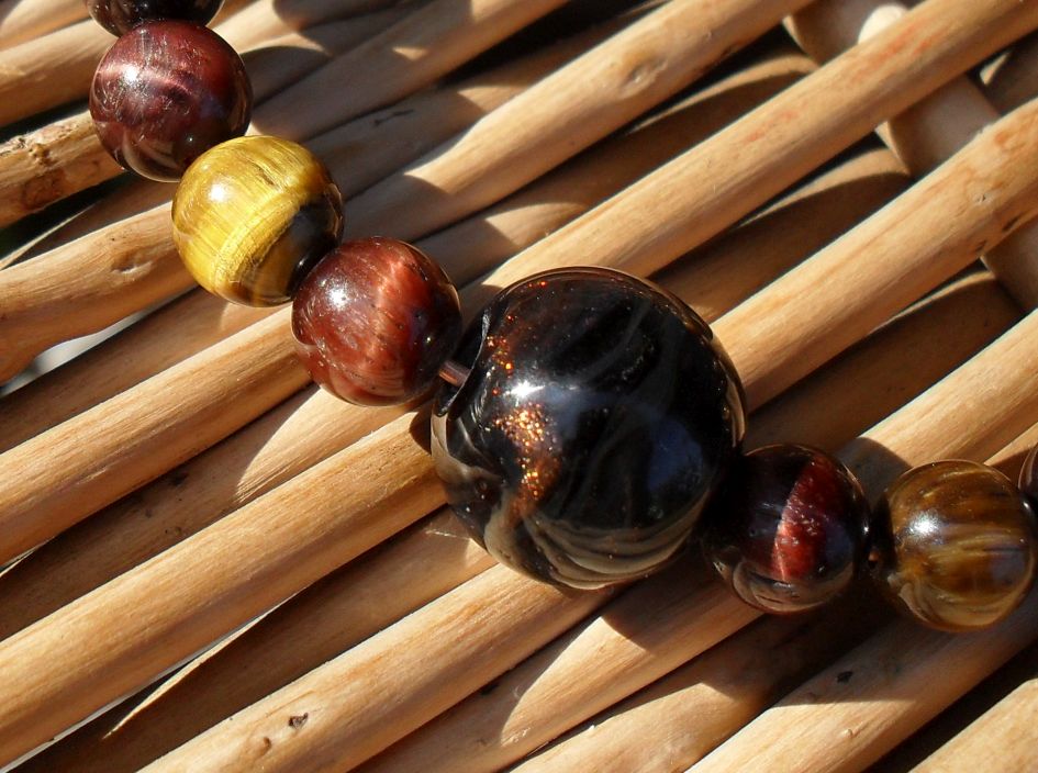 Die große Perle ist handgearbeitetes Murano-Glas (wir haben da im Nachbarort eine kleine Manufaktur), die kleinen Perlen sind Tigerauge (natur & gebrannt).