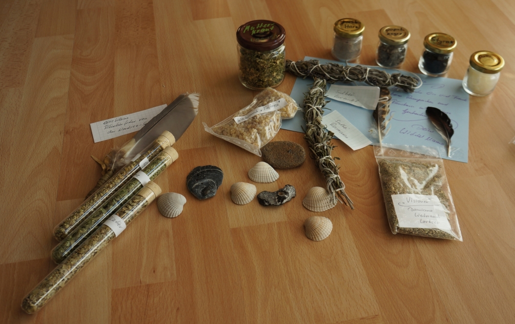 Noch mal vielen Dank für das schöne Wichtelpaket mit Kräutern, Harzen, sonstigen Funden und Steinen! +._-{###