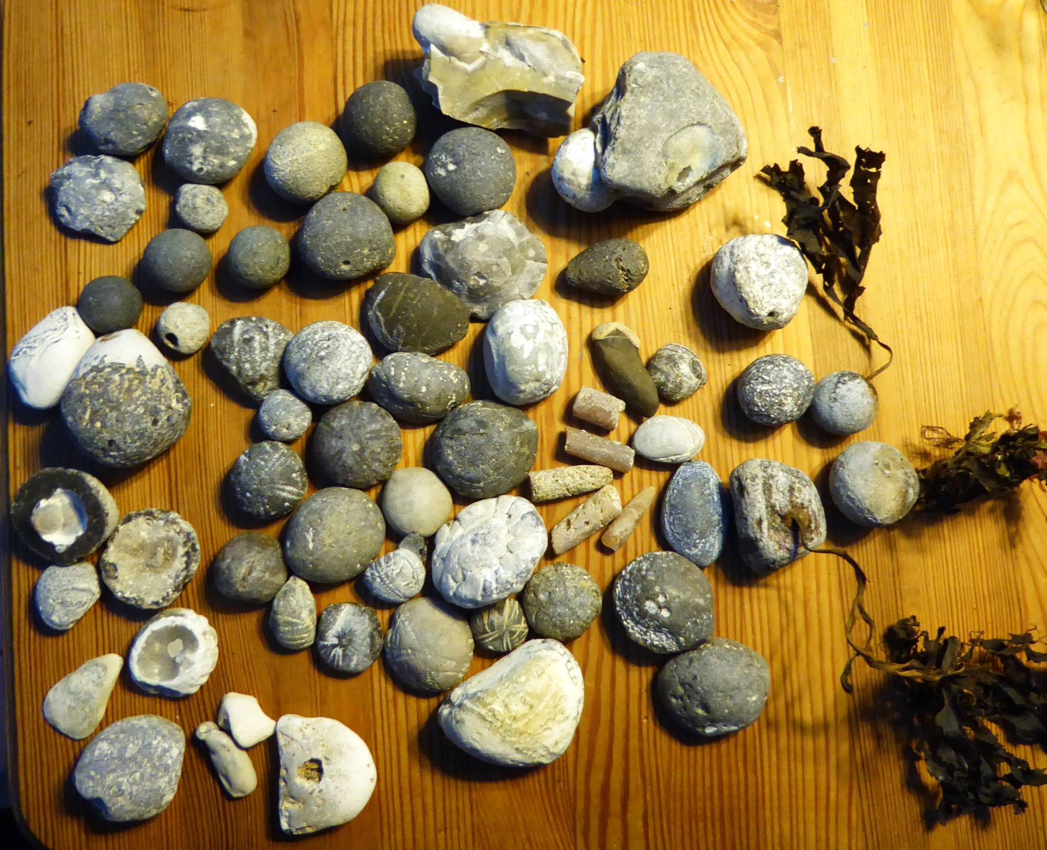 und ein paar Seeigel, Schwämme, Stachel von Seeigel, Belemnitenstückchen, Klappersteine, davon sogar 2 klappernde und ne Muschel![]()