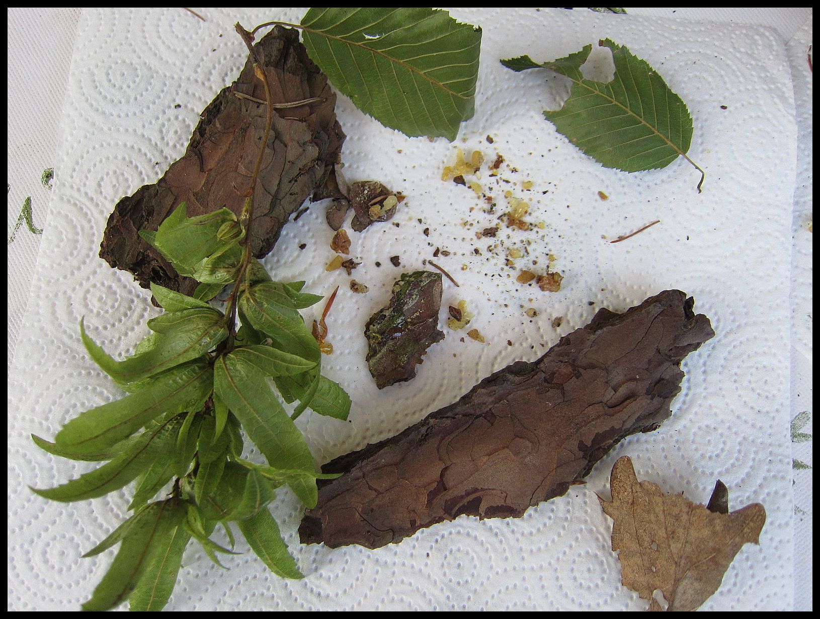 Kein Harz davon gefunden. 3) Moos kann man ja mal mitnehmen und trocknen. Geht doch auch, oder? 4) Keine Tanne? Äste anbei. 5) Was das ist? Buche? Also Buchenharz? Blätter auch anbei.
