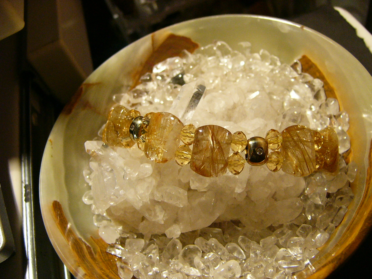 Heute mal ein Armband gefädelt Rutilquarz mit Citrin ein ähnliches habe ich mal getauscht und wie das so ist konnte keine neuen Steine finden und nun hatte ich Glück war ein fertiges Armband nur mit Rutilquarz ,
