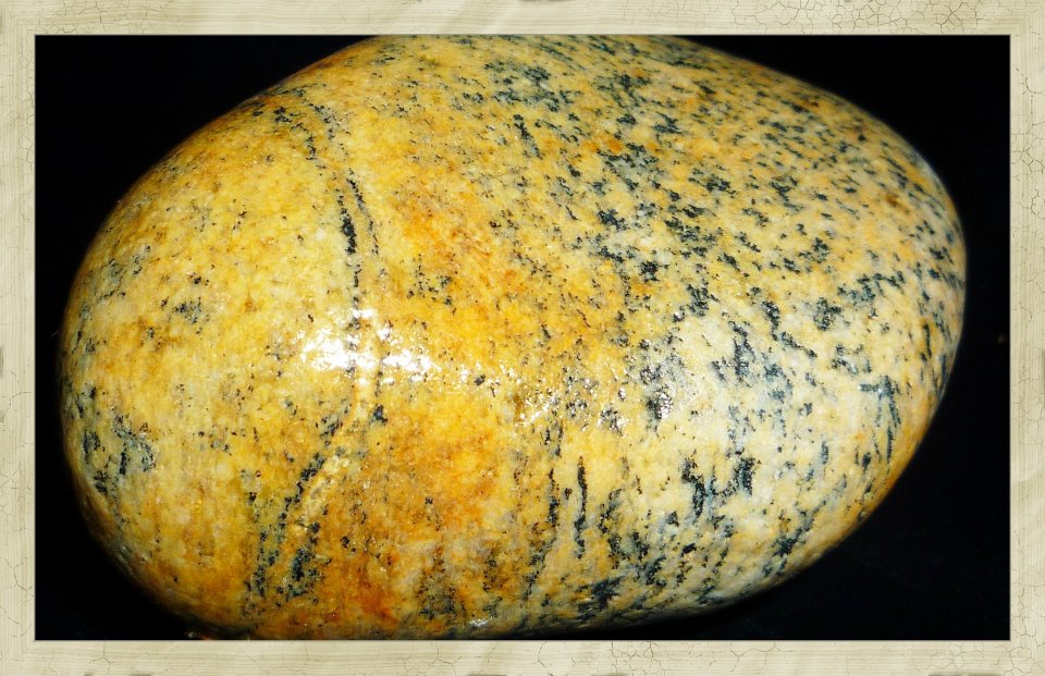 links trocken, rechts nass Heute Morgen habe ich noch eine Seite geschliffen und poliert. Ein Vulkanit - Diabasporphyrit.