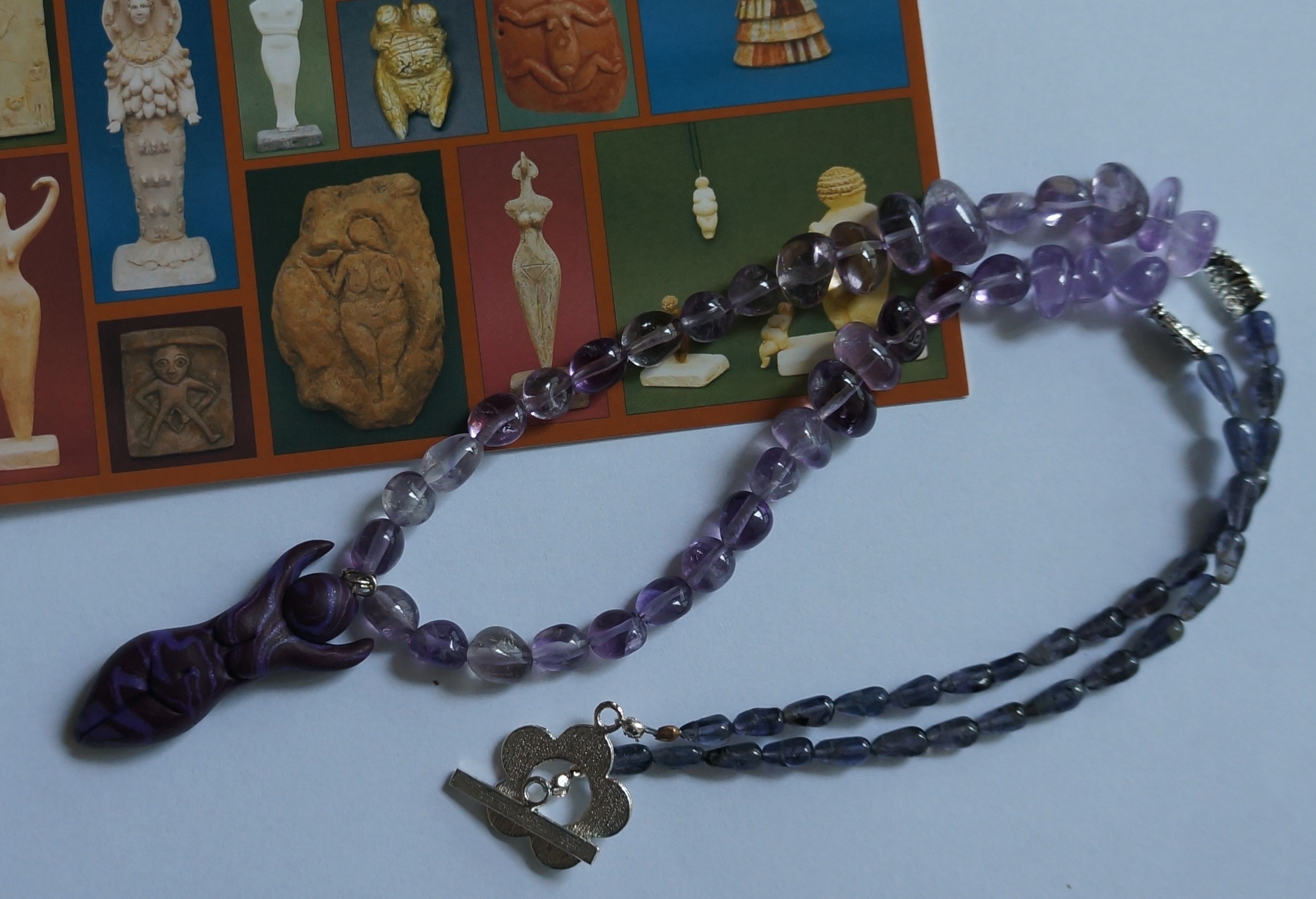 zuerst mal aus meinem "Göttinnen-Projekt" - einmal mit gekauftem Anhänger (mit Amethyst und Iolith)