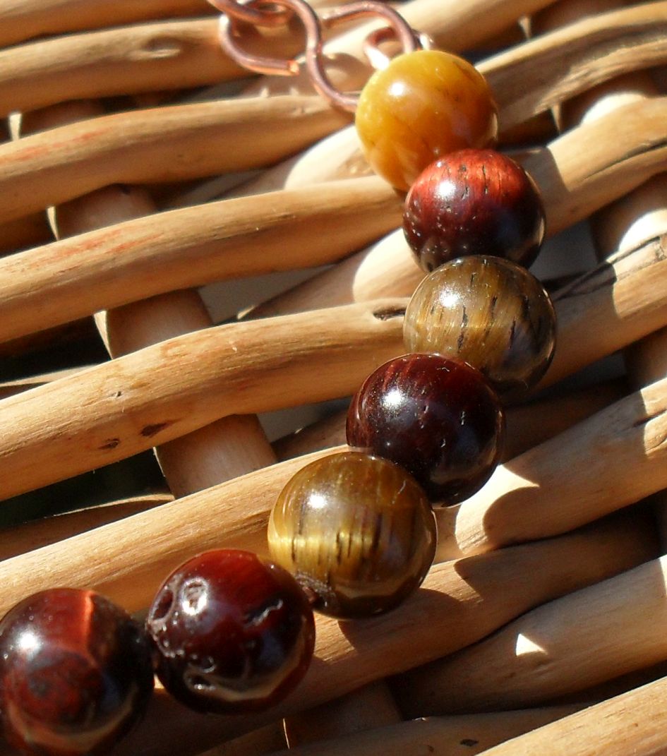 Die große Perle ist handgearbeitetes Murano-Glas (wir haben da im Nachbarort eine kleine Manufaktur), die kleinen Perlen sind Tigerauge (natur & gebrannt).