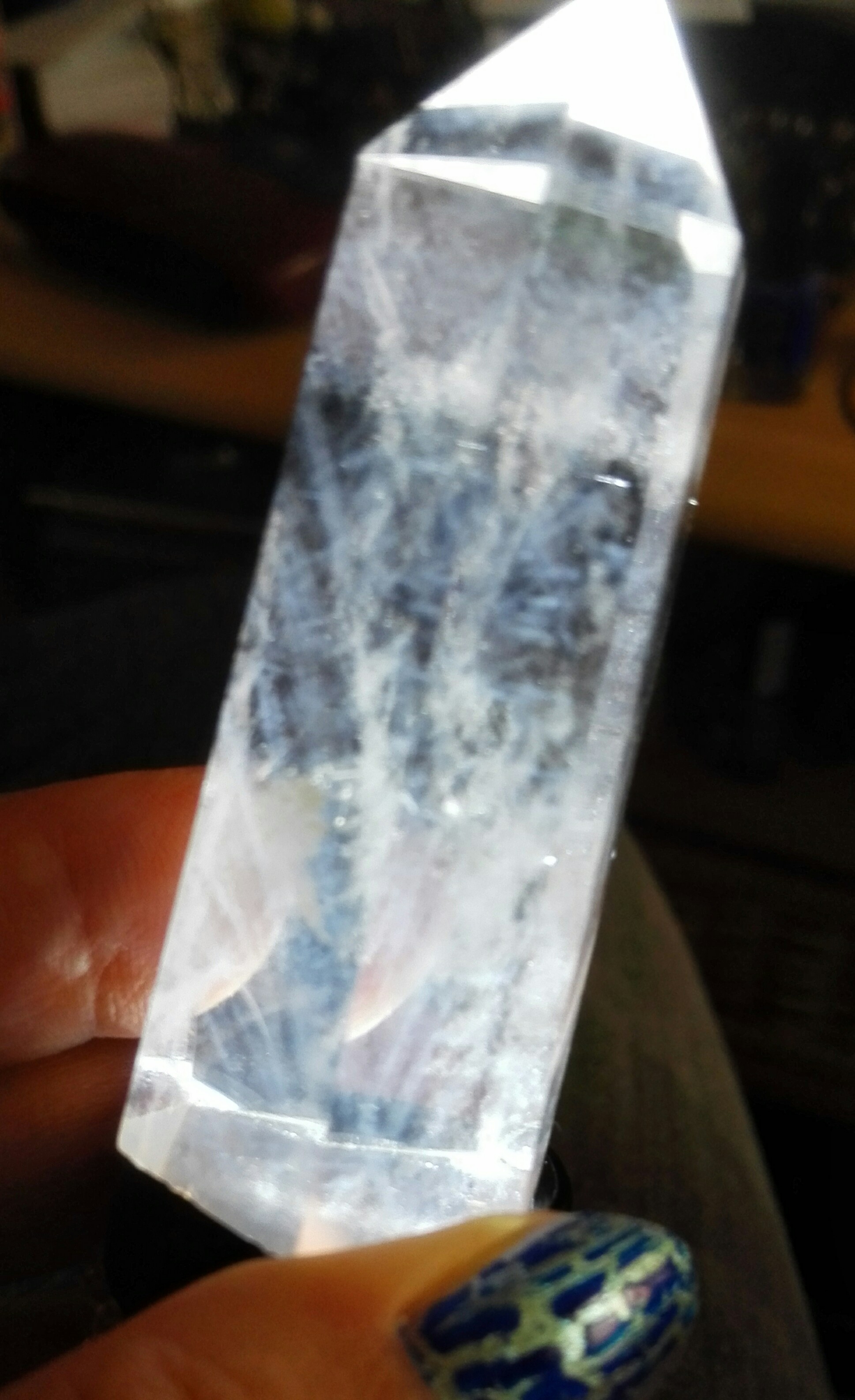 Ich habe das erst gesehen als ich den Kristall unter einer Halogenbirne angesehen habe,im normalen Tagesdurchlicht