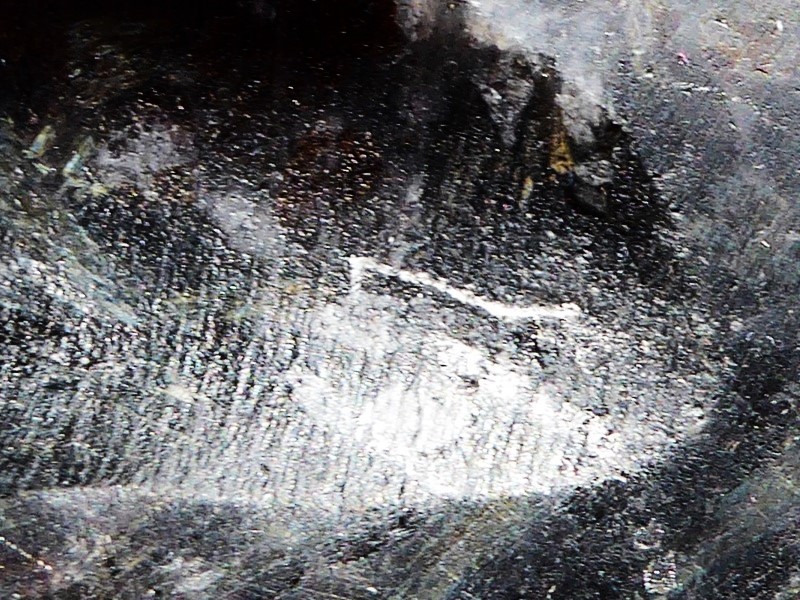 der Große, da seht ihr die Ritzer in der Mitte vom Messer eingerahhmt von den Ritzern des Fluoriten