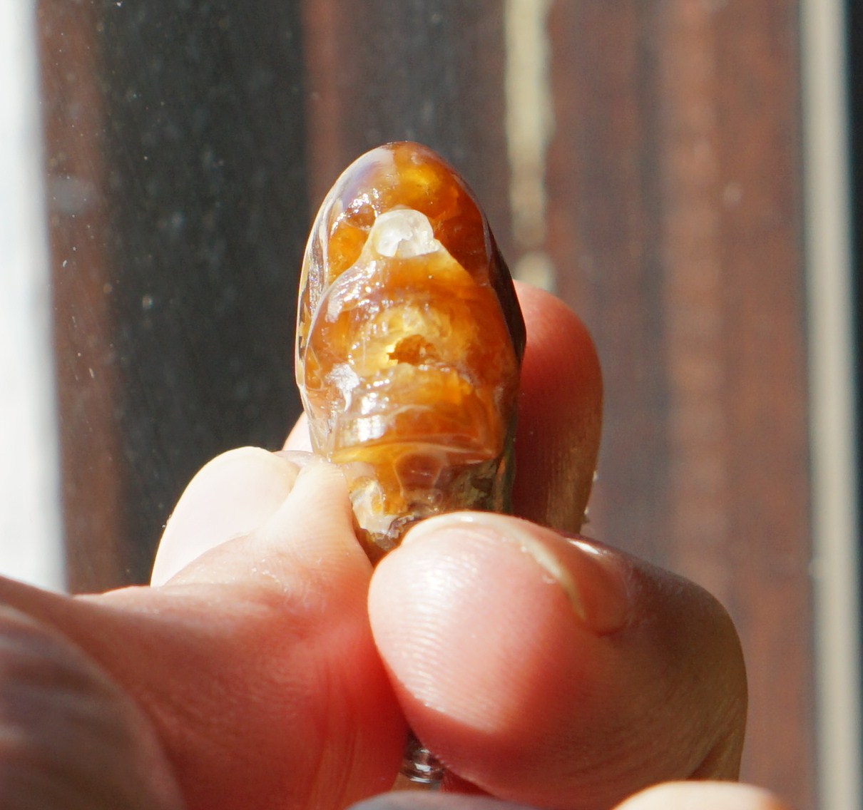 Beim schleifen ist mir aufgefallen, das im Stein viele, viele "Kristallhöhlen" sind. Im Gaumen und in der Nase. Aber auch im Auge habe ich eine gefunden. Leider kann ich sie nicht gut fotografieren, da ich kein Makro-Objektiv habe. Aber es ist wunderschön.....