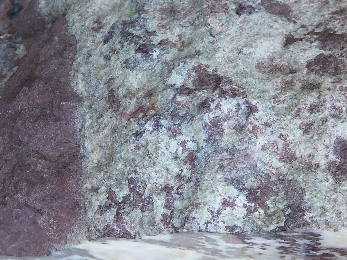 Das ist das Gestein in Bebertal, so rötlichviolett, mit Calcit. Er wollte mal sehn wie es angeschnitten aus sieht, ich mag die Farbe