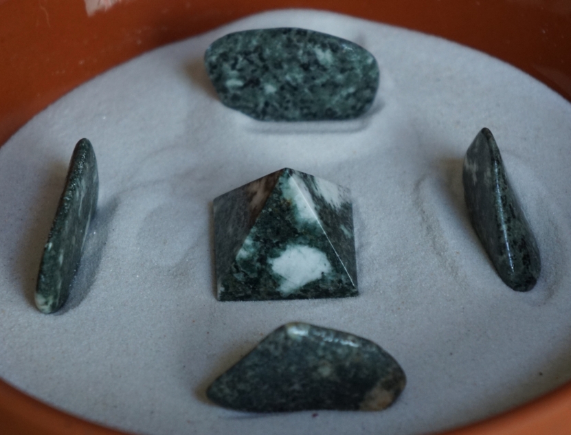 gut geeignet für Meditationen oder stille Kontemplation – der Preseli eignet sich gut um die Energie darauf zu fokussieren (mit dem Stein in der Hand meditieren)