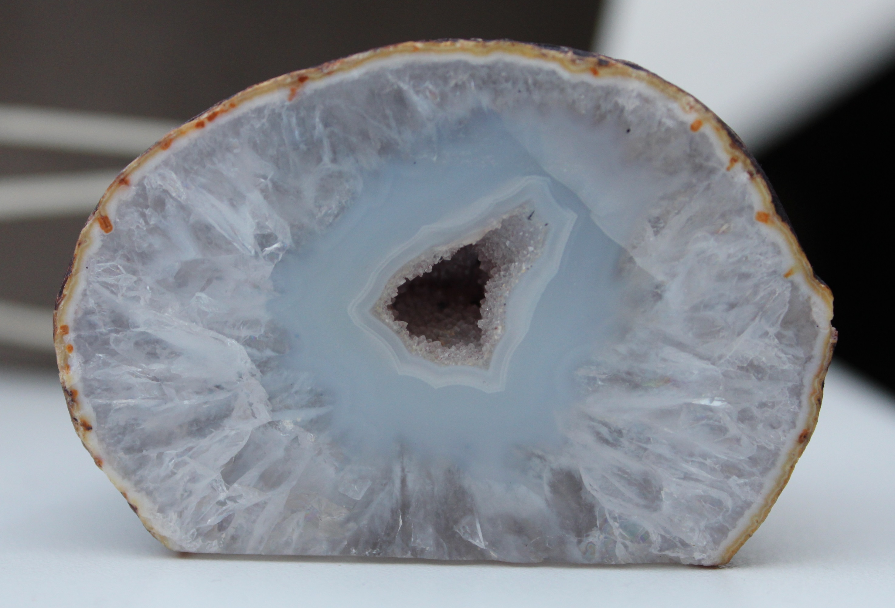 Also bei mir sieht das Äußere auch hell lila aus. Da würde ich dann auch eher zu Amethyst tendieren. Das blaue in der Mitte ist Achat.