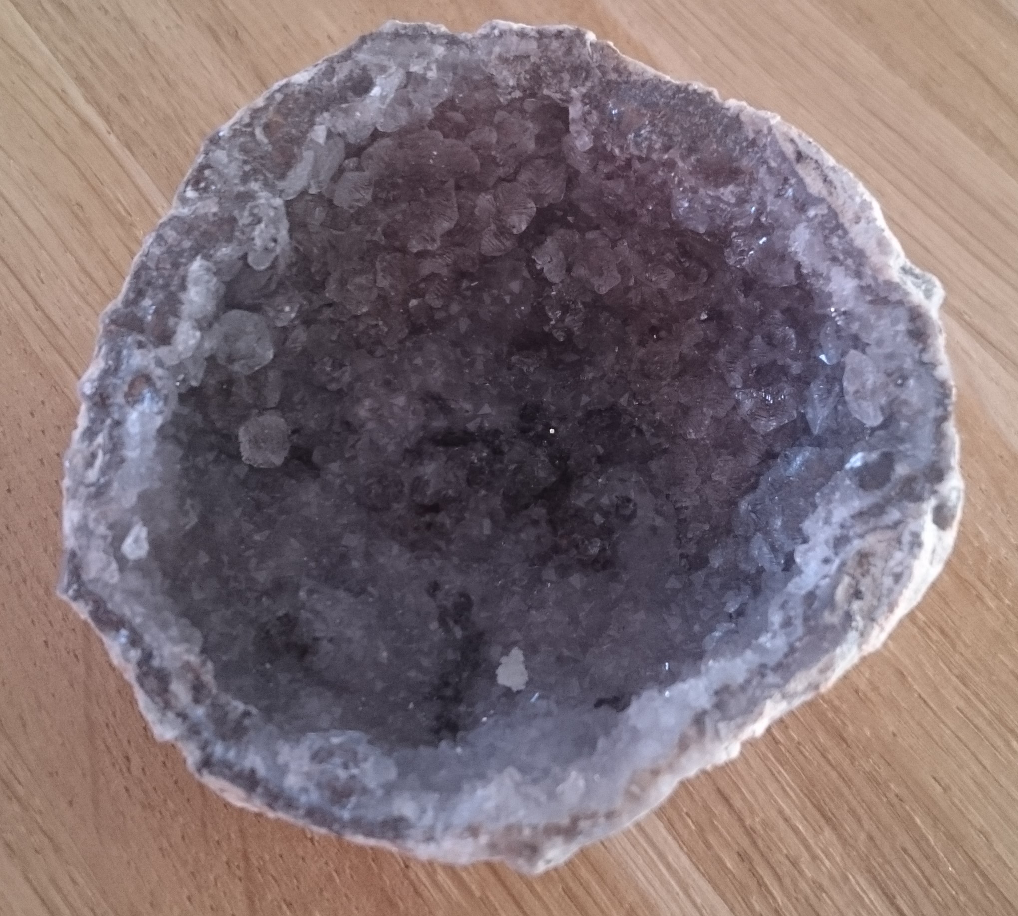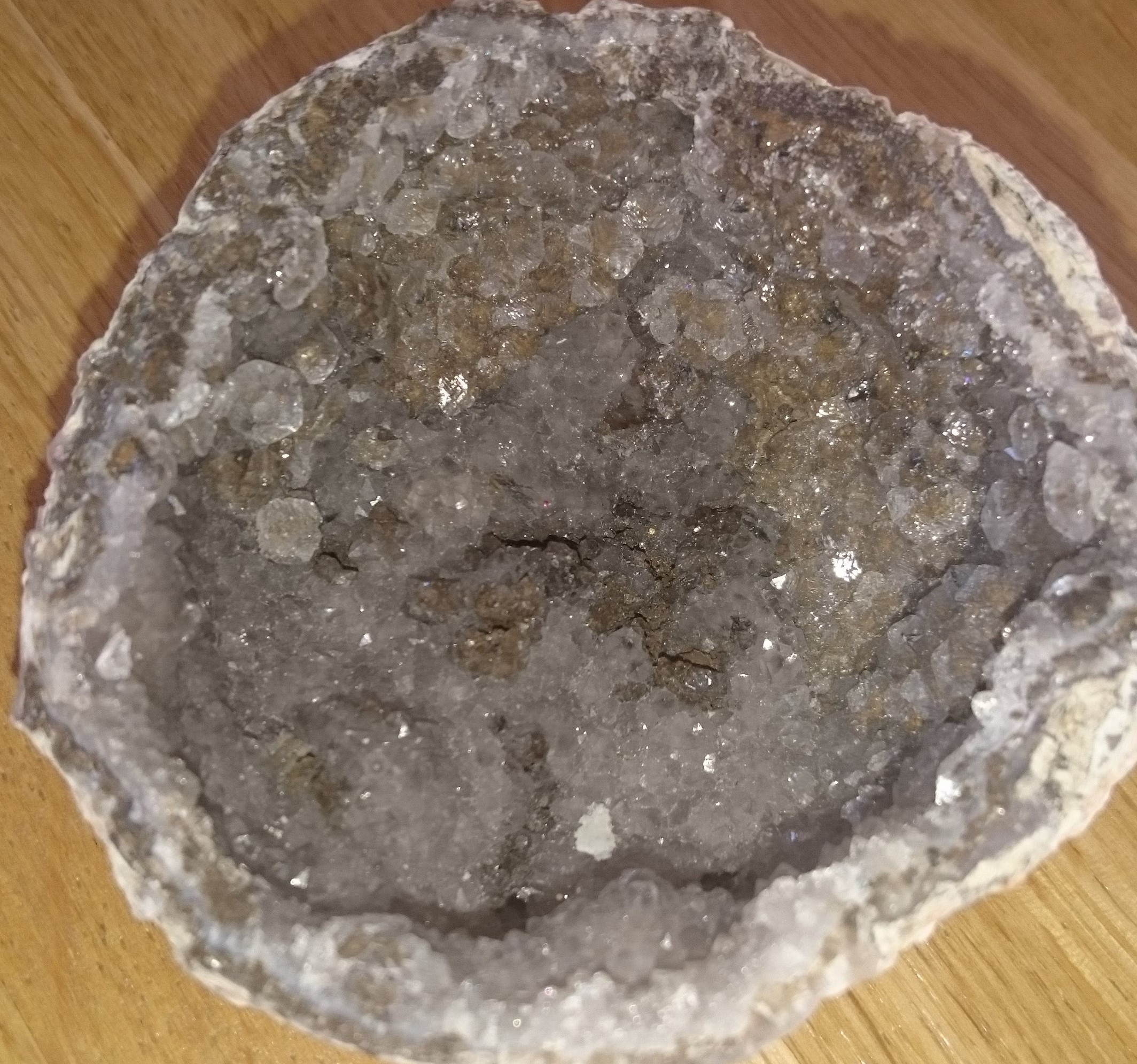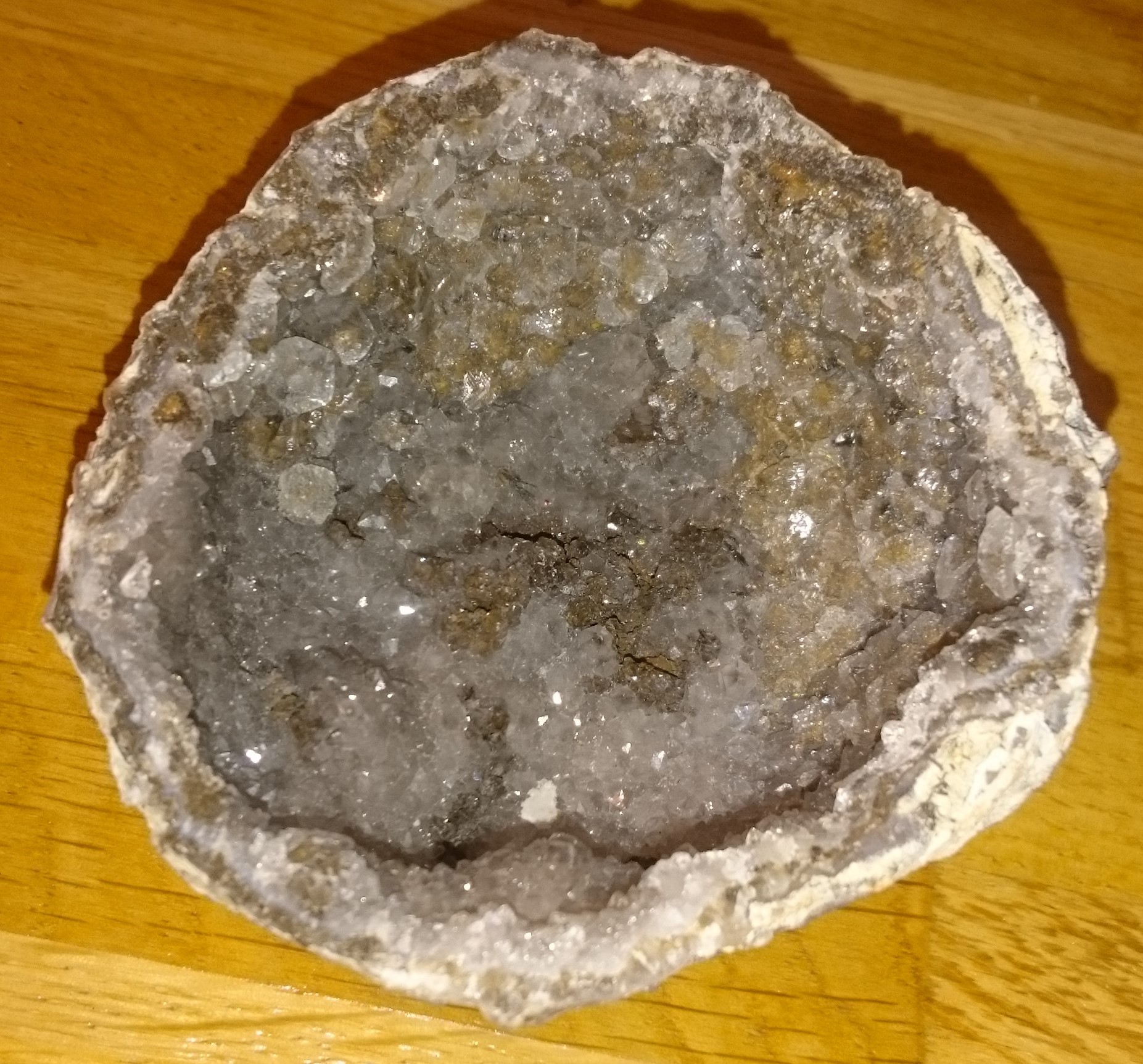 Es ist doch einer dieser mexikanischen Achatdruse. Nur dass der Chalcedon keine Zeit hatte die Achatschichten zu Bilden. So wurde es eine hübsche Quarzdruse ganz ähnlich einer Amethystdruse.