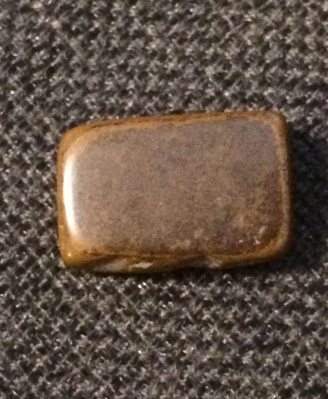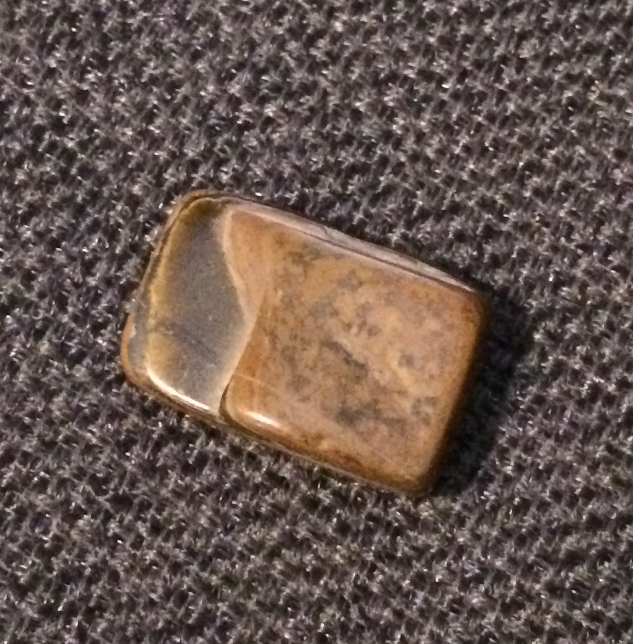 Fotografier ihn mal von der Seite, so dass wir die Kante sehen können. Ich tippe auf Tigerauge.