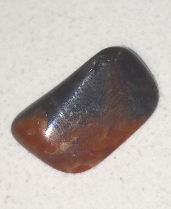 Glitzert der orangene Bereich etwas? Irgendwie denke ich an Iolith-Sonnenstein.