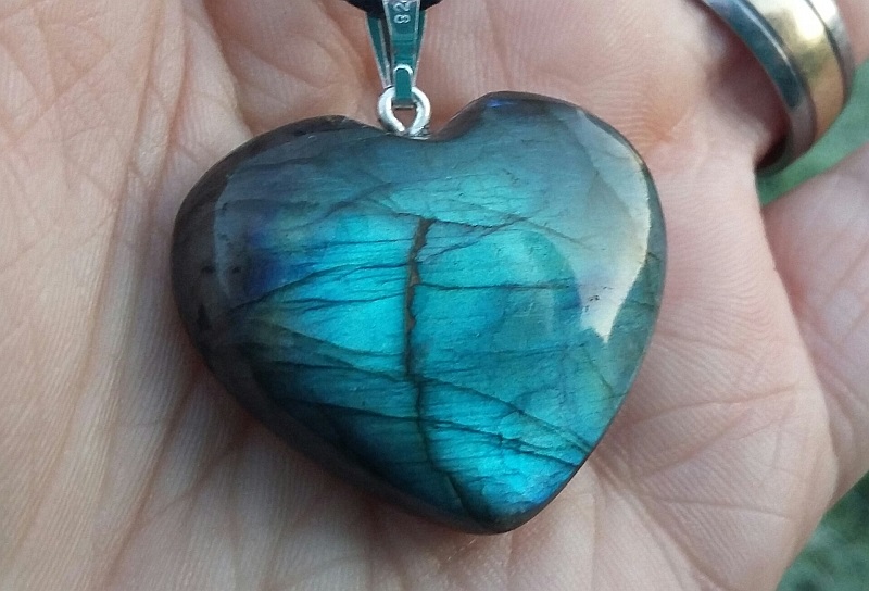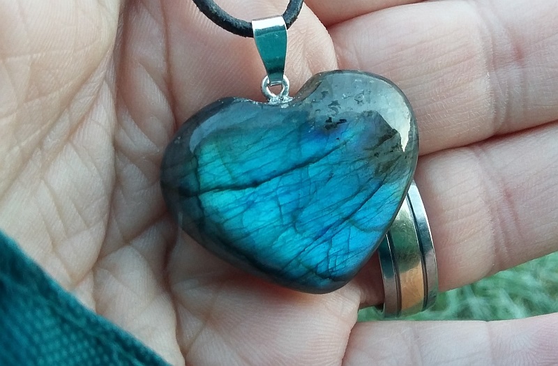 Zwei Bilder von meinem neuen Labradorit Herz sind gerade eben bei der morgendlichen Gassirunde entstanden.