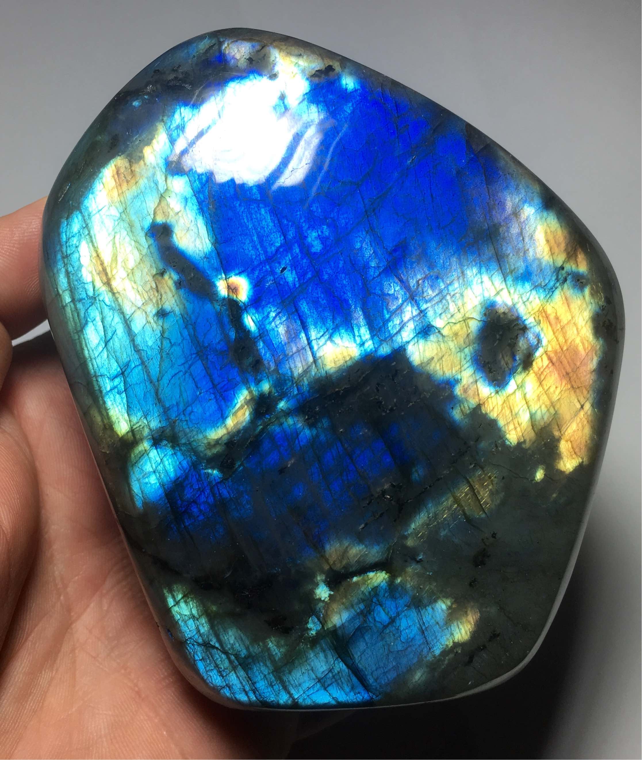 Auch ein schönes Stück ja die Farbenpracht zieht uns an, habe auch etliche Labradorite.