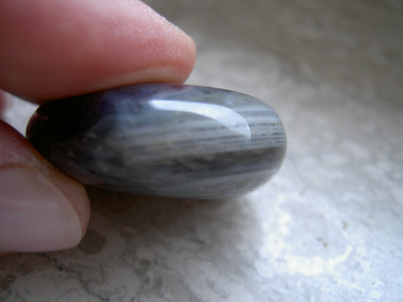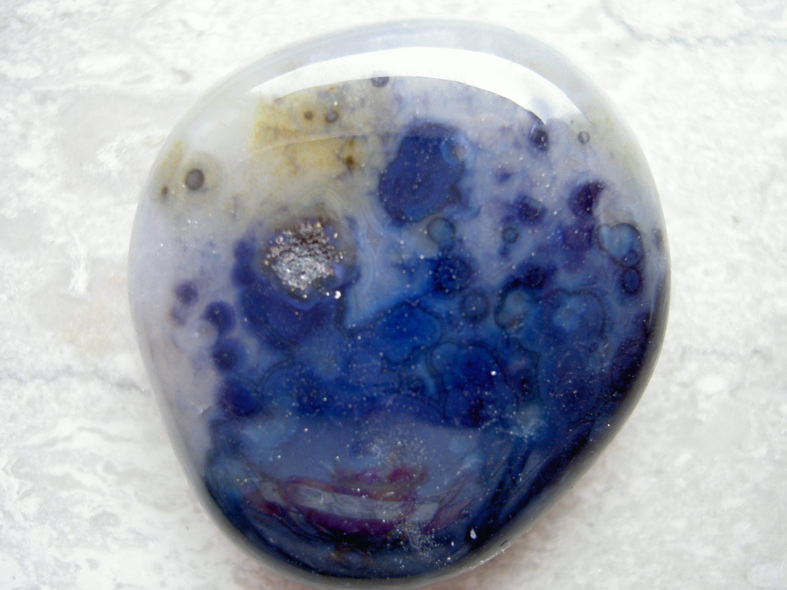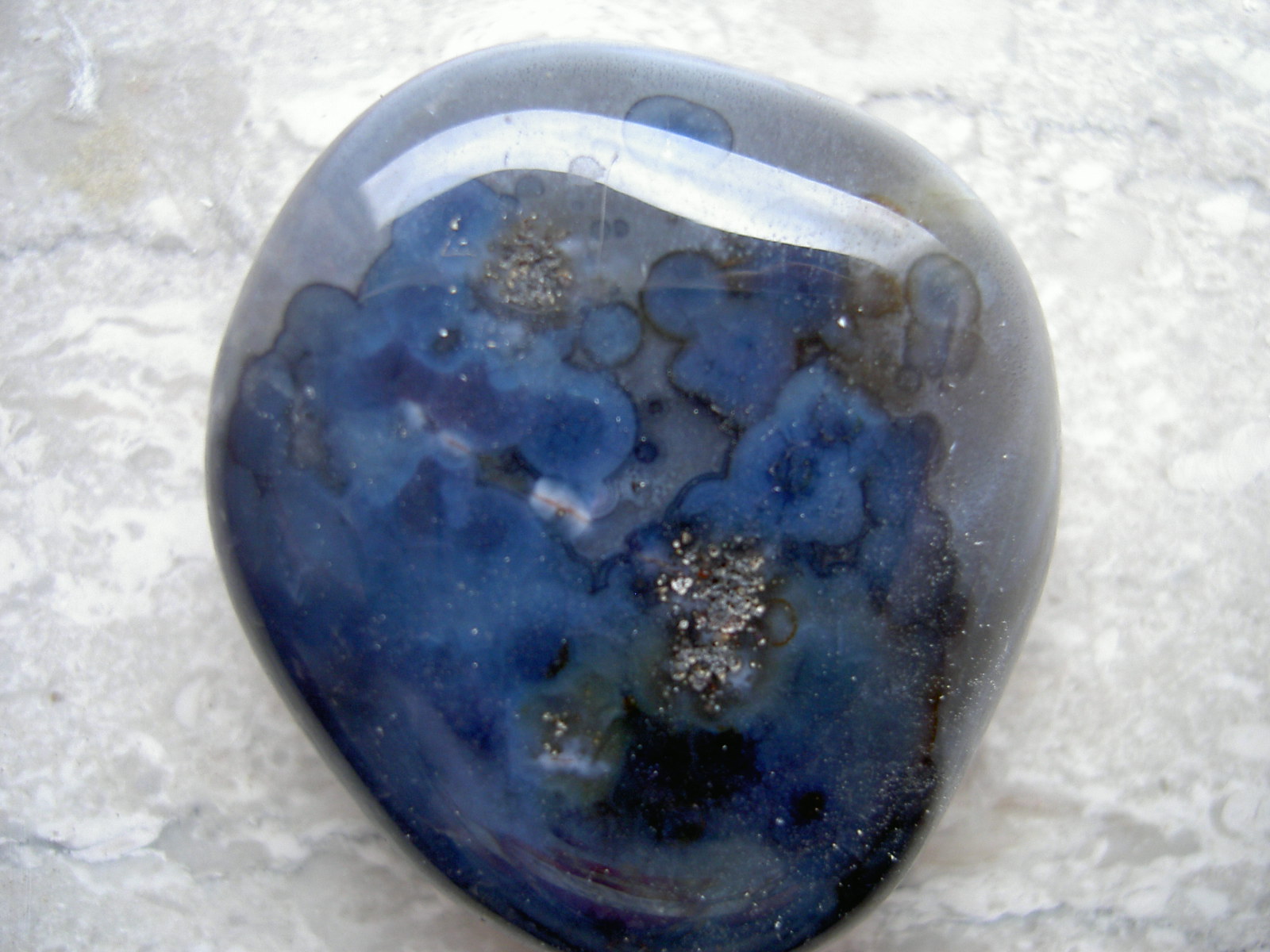 durch die Bänderung schaut er für mich wie ein blau gefärbter Achat aus