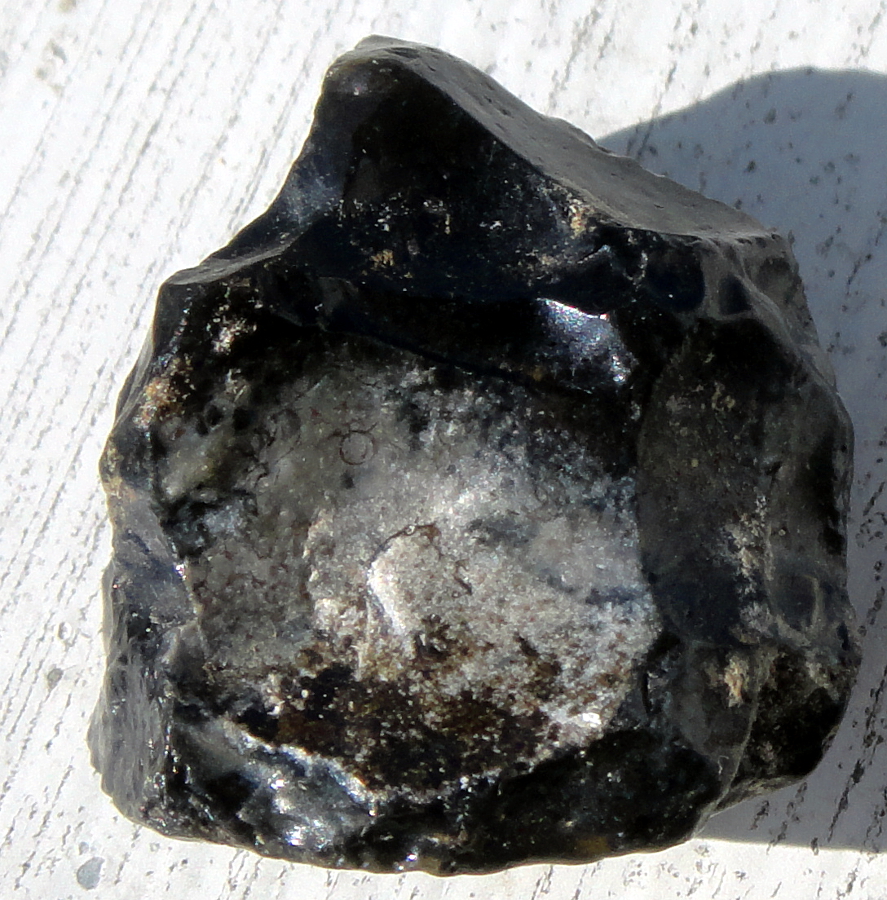 hier habe ich noch einen schwarzen Stein, den ich mal vor einigen Jahren gefunden habe. Zuerst dachte ich es wäre Teer, aber die Feuerprobe hat das nicht bestätigt. Er riecht nach nichts, wenn man Feuer dran hält.