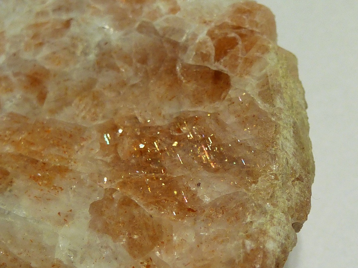 Ja Sonnenstein - Aventurin Feldspat. Ein Oligoklas, der durch eingeschlossene Hämatit-Flitter rötlich bis orange schimmert.