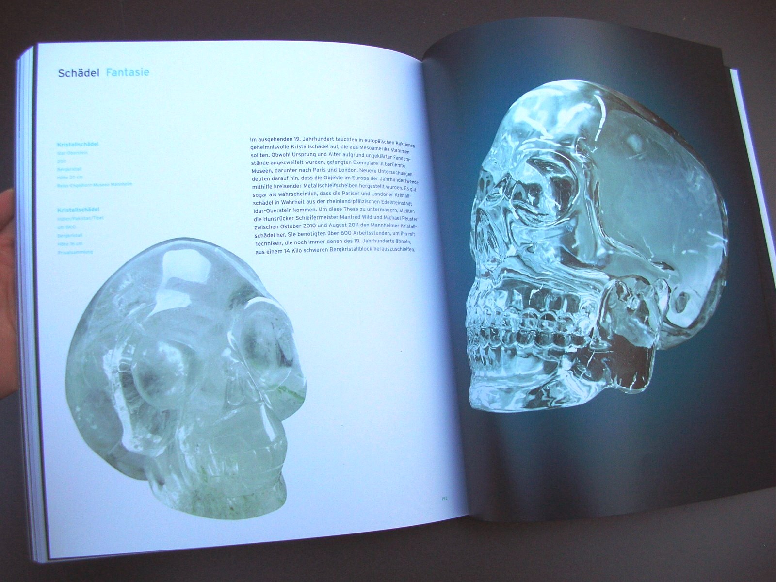 Auch die Kristallschädel sind eines vieler Themen. Einmal wird Bezug auf die Exemplare aus Südamerika genommen und auf die Legende der 13 Kristallschädel als Hüter alten Wissens, die in einer Vitrine mit verschiedenen sehr schönen Skulls aus diversen Steinen dargestellt sind. Dann gibt es auch die Kristallschädel aus Tibet als Thema und als Exponate sowie einen Verweis auf die heutige Beliebtheit von Schädeln aus Stein.