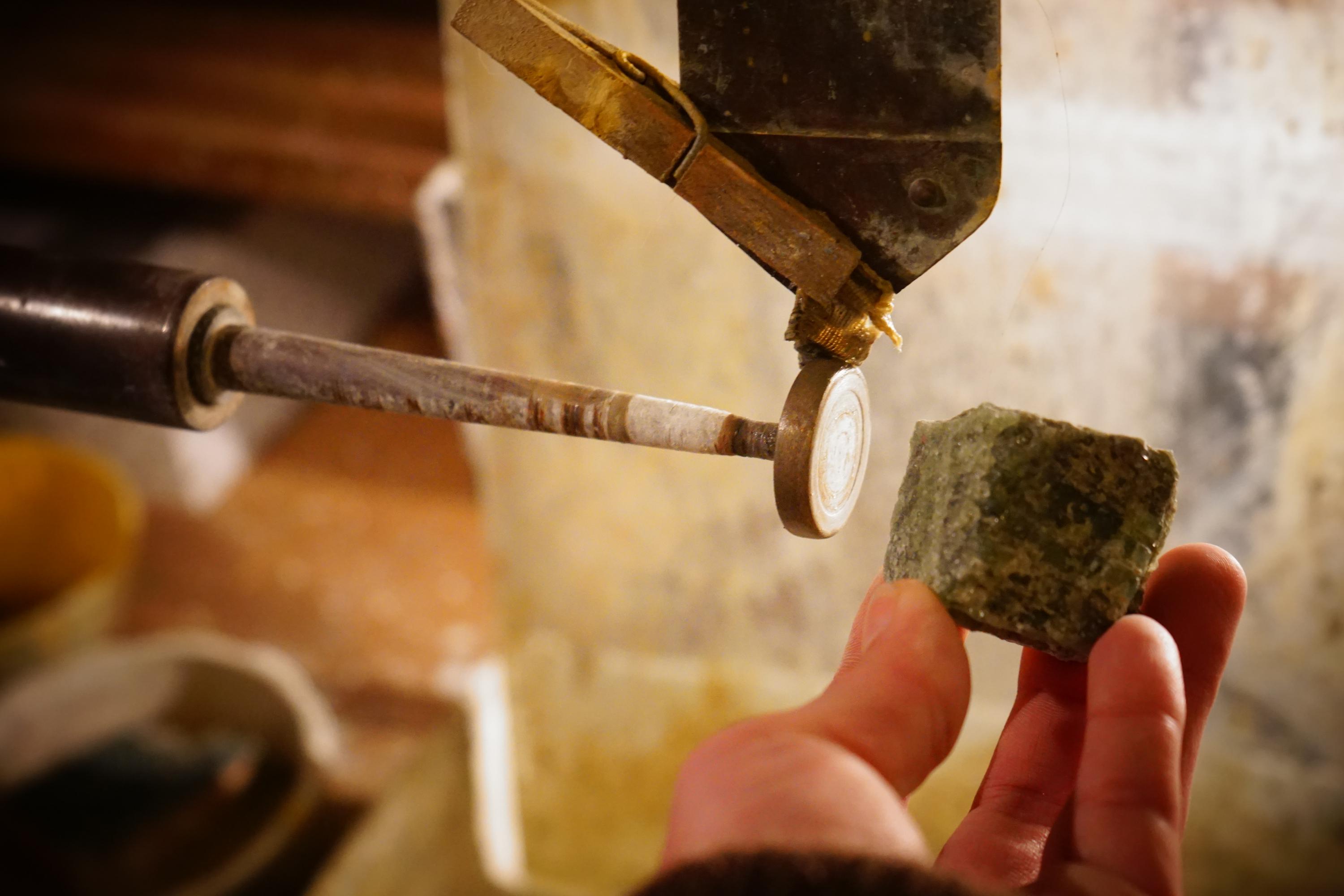 Polierräder habe ich Filz/holz und Kork. Die mach ich mir teilweise selbst. Poliermittel habe ich Bims-Tribel-Cer. Wobei Cer und Tribel für Hohglanzpolitur ist.