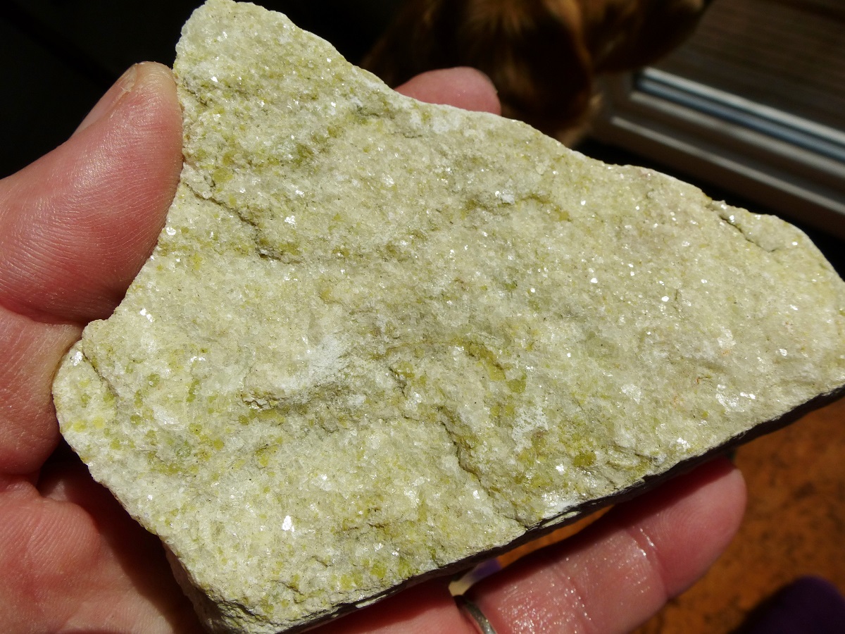 vielleicht kannst du ja noch den fundort deines gesteinsstücks herausfinden und dann über weitere recherchen evtl. auch, welche begleitmineralien darin enthalten sind.