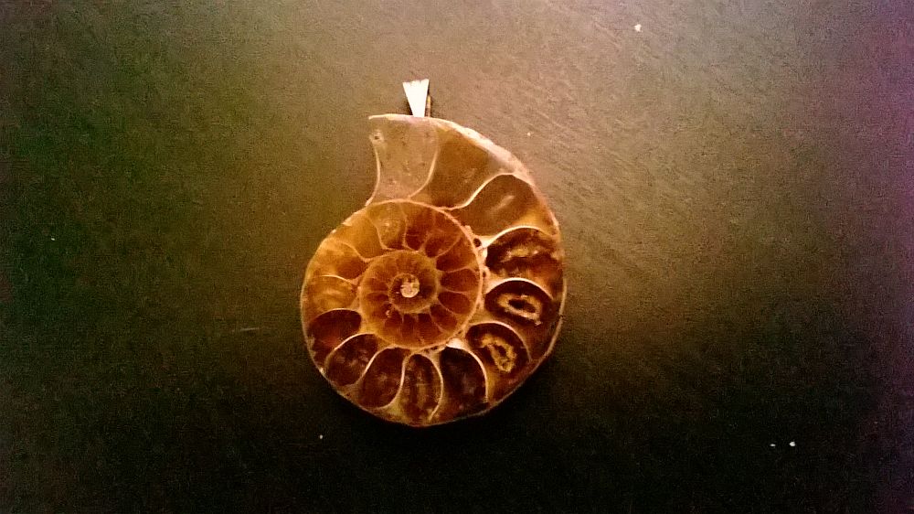Der Amonit Anhänger hat eine Breite von 2,9 cm, und eine Länge von 3,5 cm