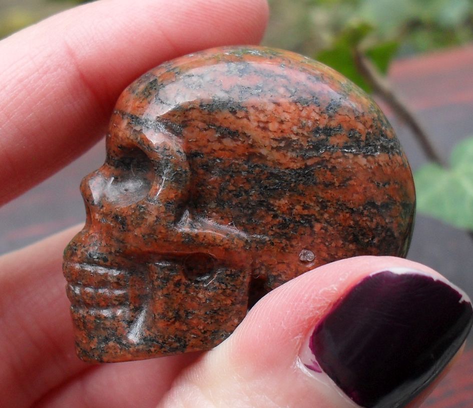 Allein vom Anfassen her würde ich aber doch eher zu Granit tendieren, denn der Skull fasst sich nicht fettig an, wie Calcit.