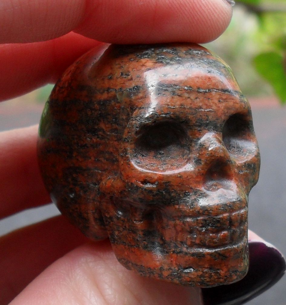 Allein vom Anfassen her würde ich aber doch eher zu Granit tendieren, denn der Skull fasst sich nicht fettig an, wie Calcit.