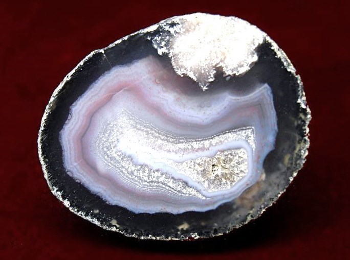 Der im Bild zu sehende Achat ist so ungefähr 30 cm lang. Am linken Achatrand ist ein weißer Punkt zu sehen. Und daneben liegt eine