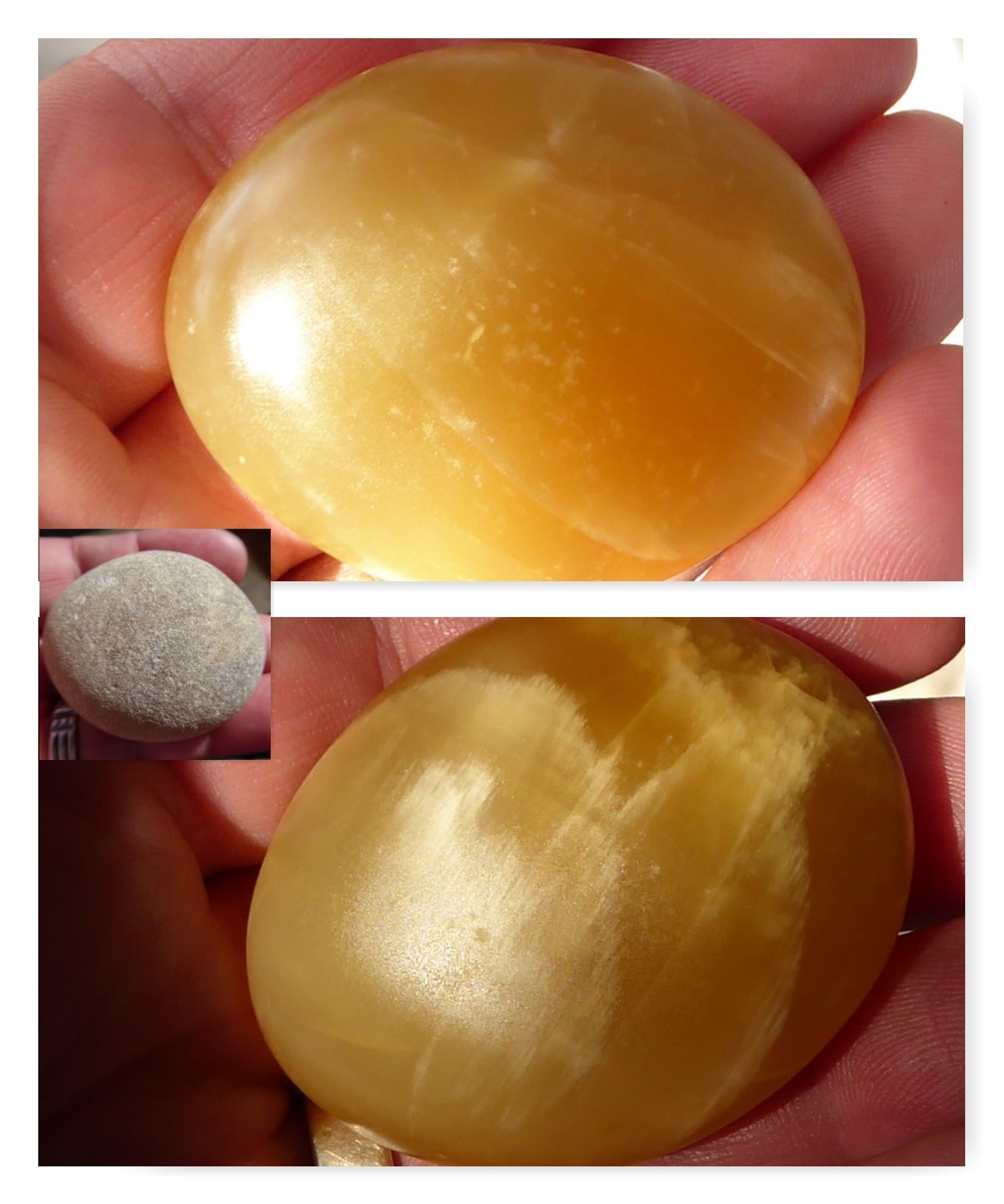 Und den fand Göga gestern für mich, hab ihn heute geschliffen, muss noch richtig poliert werden, aber geht schon einigermaßen so, das untere ist im Schatten, normal so hell wie das obere.