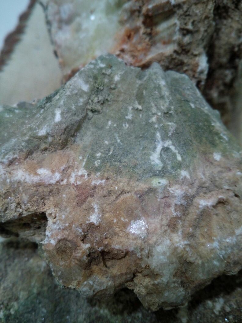 Auf dem Steine befinden sich grüne Stäubchen die auch recht erkennbar sind. Wenn man es mit der Finder reibt, kann man es leicht entfernen.
